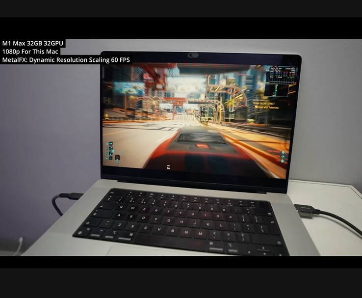 Mit 32 GPU-Cores und reichlich Arbeitsspeicher liefert der M1 Max bei 1080p mit hohen Einstellungen sowie aktiviertem MetalFX starke Ergebnisse. In Innenbereichen bewegt sich die Bildrate zwischen 60 und 90 FPS, im Kampf in der Open-World sind es immer noch über 40 FPS. Andrew erwähnte auch, dass dank der aktiven Kühlung keine größeren Probleme mit der Temperatur aufgetreten sind.