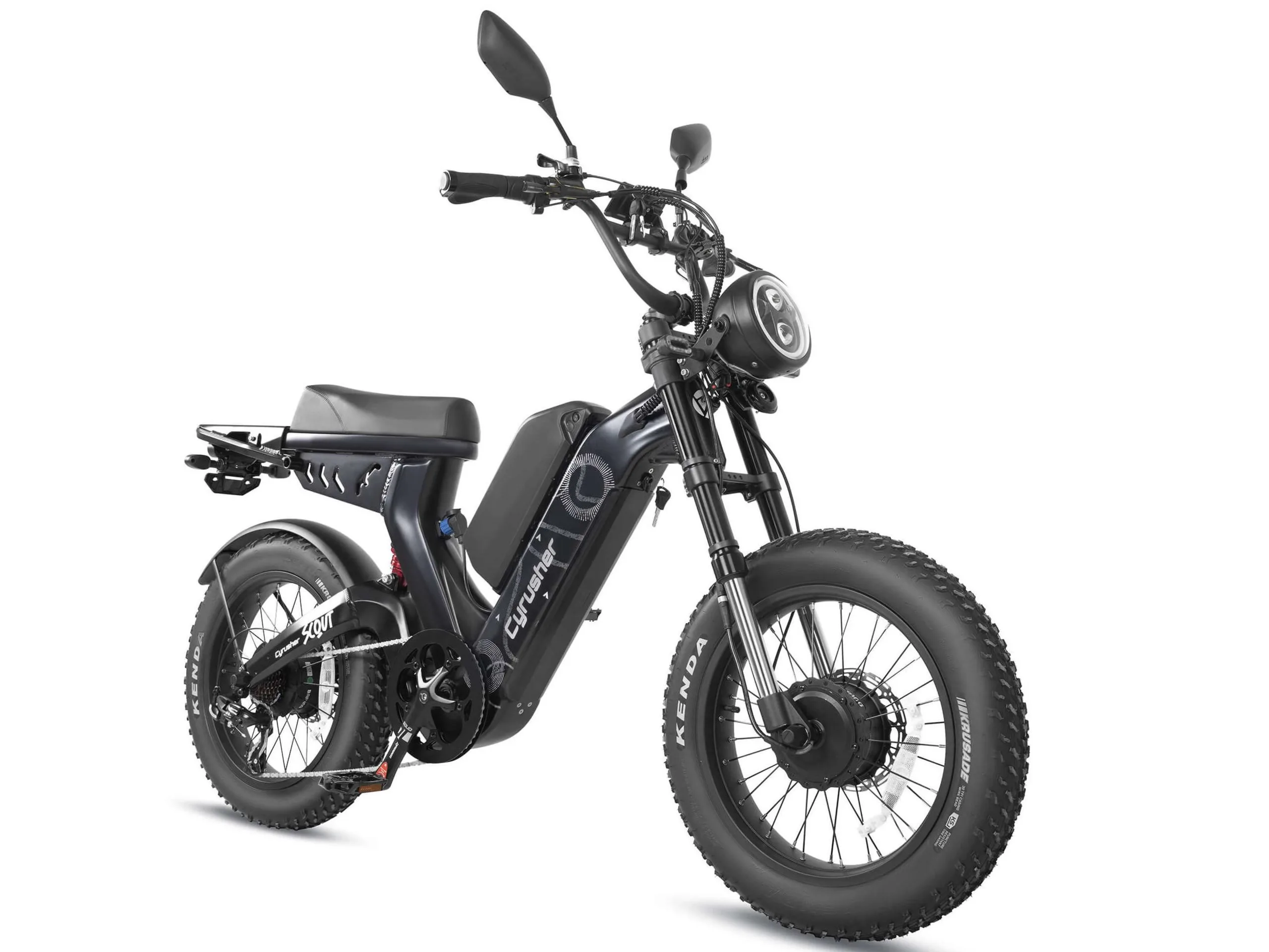 Cyrusher bietet ab sofort ein neues E-Bike in zwei Versionen zur Vorbestellung an. Dabei ist das Cyrusher Scout von der Optik insgesamt eher an ein Moped angelehnt, bringt aber trotzdem Pedale mit. Angeboten wird das Scout in einer Basis- und einer Pro-Version. Die Basisversion bringt einen einzelnen Bafang-Nabenmotor mit einer Leistung von 1.000 Watt mit, das Pro-Modell bringt zwei Bafang-Motoren mit jeweils 750 Watt. Die Basisvariante ist mit einem 1.040 Wh starken Akku ausgestattet, die Pro-Version bringt zwei so große Akkus mit. Cyrusher beziffert die Reichweite dann auf bis zu 180 Kilometern. Die Leistungen sind jeweils zu hoch für den legalen Einsatz im öffentlichen Straßenverkehr in Deutschland.