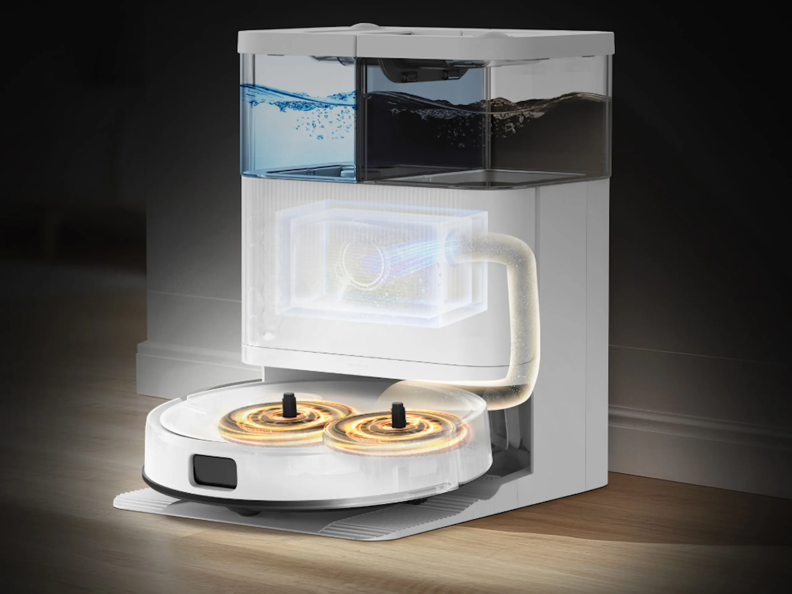 Für den Preis soll der Teendow D63S Ultra mit einem großem Funktionsumfang überzeugen. So kommt das Modell mit einer Basisstation, in welcher der eigentliche Saugroboter nicht nur abgesaugt und mit Frischwasser befüllt werden kann, stattdessen lassen sich in dieser die rotierenden Wischmopps auch reinigen. Dazu kommt dann auf 50 °C erwärmtes Wasser zum Einsatz, zudem ist die Trocknung möglich. Diese erfolgt mit Heißluft und mit 60 °C, damit dürften sich insbesondere unangenehme Gerüche und das unkontrollierte Wachstum von Mikroorganismen verhindern lassen.