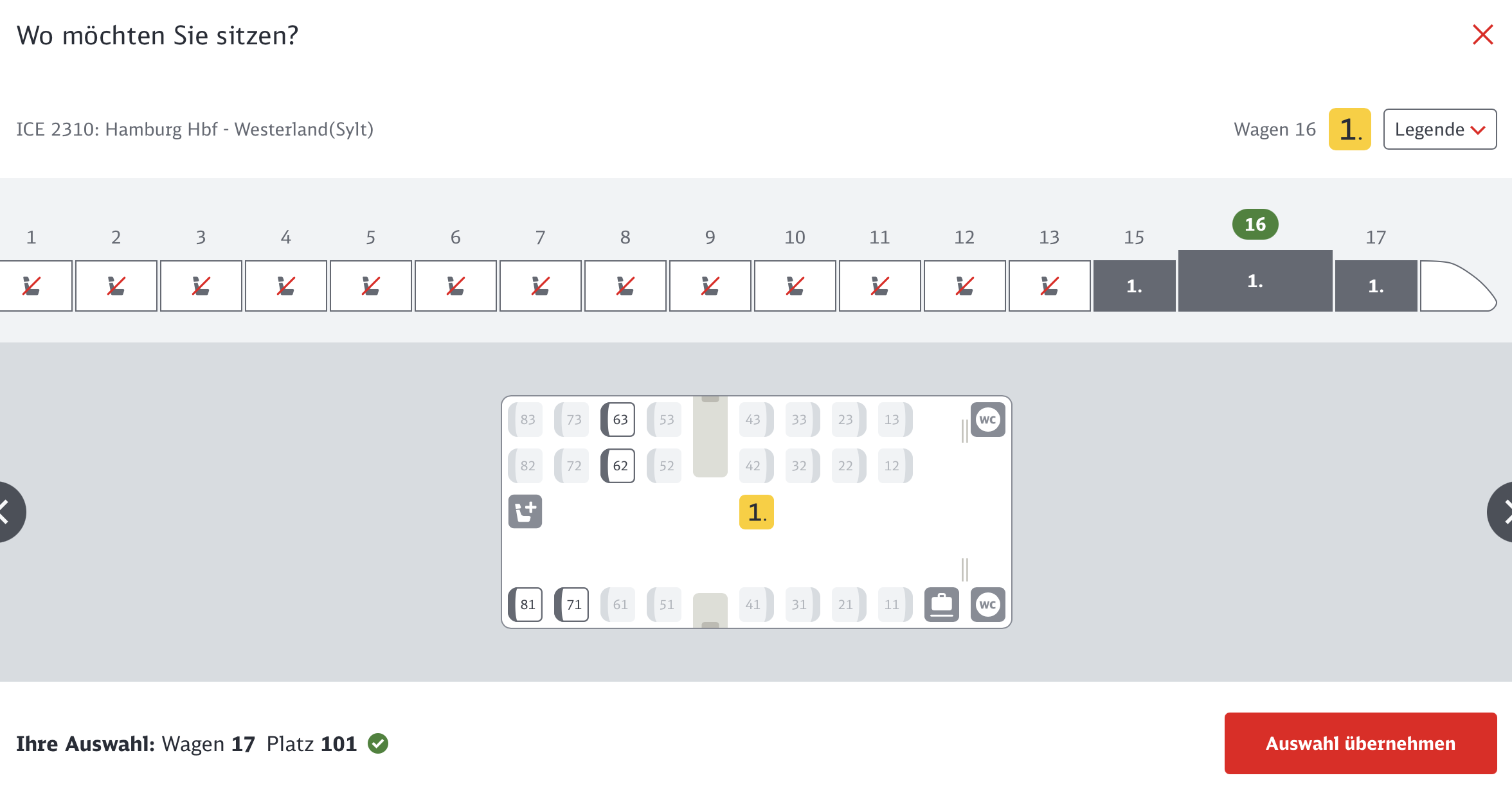 Im IC 2310 kostet eine einfache Fahrt von Hamburg nach Sylt ohne Bahncard und kurzfristig erhoben (für den 16. März 2026) 60,70 Euro in der 2. Klasse und 112,30 Euro in der 1. Klasse. Der Vollständigkeit halber waren für beide Tickets am 15. März auch geringfügig günstigere Sparpreise verfügbar. Wer sich wundert: Das ist vor allem für Bahnbonus-Freifahrten relevant, denn die Existenz solcher Sparpreise ist ein starker, wenn auch nicht perfekter Hinweis, dass noch Freifahrten verfügbar sind.