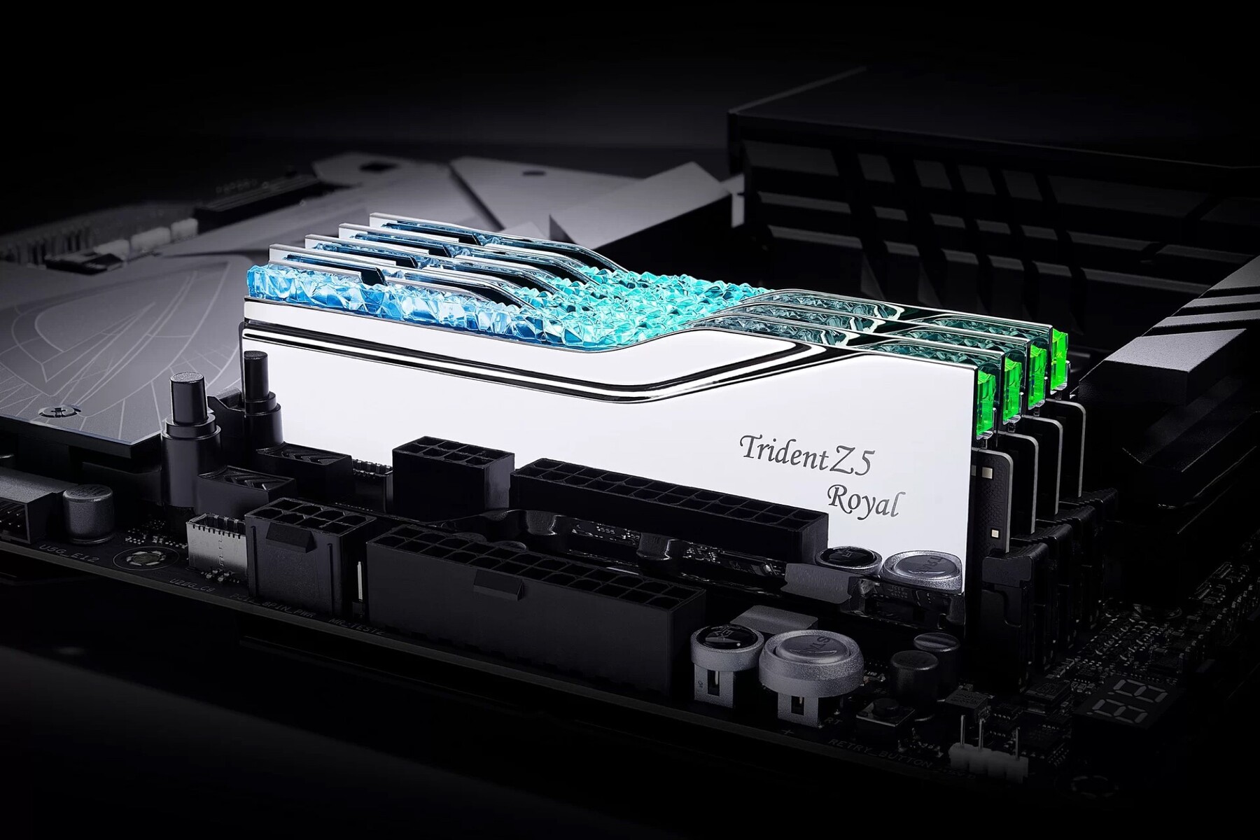 Mit einem Gehäuse in glänzendem Silber oder Gold und einer kitschigen Juwelenkrone in Weiß, die dank integrierter RGB-Beleuchtung in einer Farbe nach Wahl erstrahlen kann, ist G.Skills neuester Trident Z5 Royal Arbeitsspeicher das Äquivalent einer Rolex Cosmograph Daytona “Leopard” – viel auffälliger als nötig, aber immerhin mit solider Technik ausgestattet.
