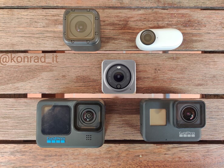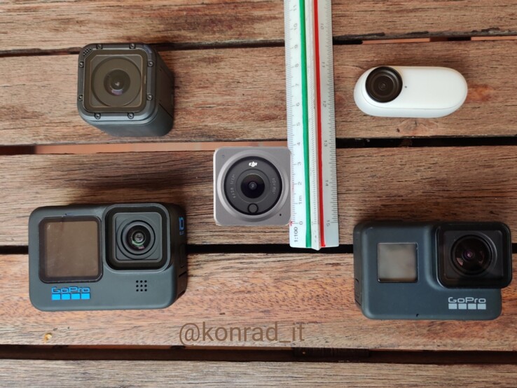 Wer gehofft hatte, dass die DJI Action 2 viel günstiger wird als die GoPro Hero 10 Black, dürfte sich allerdings täuschen. Offenbar verlangen erste Händler um die 349 britische Pfund für die Power-Combo, laut Konrad Iturbe soll der Preis in der EU um die 400 bis 435 Euro je nach Land betragen. Update 21.10. 09:00: Weiterer Screenshot oben liefert Europreise für die Kombopakete) Das Displaymodul hat ein OLED-Display, vier extra Mikros und einen Akku, der 160 Minuten extra Laufzeit bieten soll. Das Kameramodul ist bis zu 10 Meter wasserdicht, nicht allerdings die Zusatzmodule, wie wir aus den Detailinformationen und Specs erfahren (siehe unten). Konrad hat das Renderbild der DJI Action 2 unten auch in eine Collage mit anderen bekannten Actioncams integriert - für einen praktischen Größenvergleich.