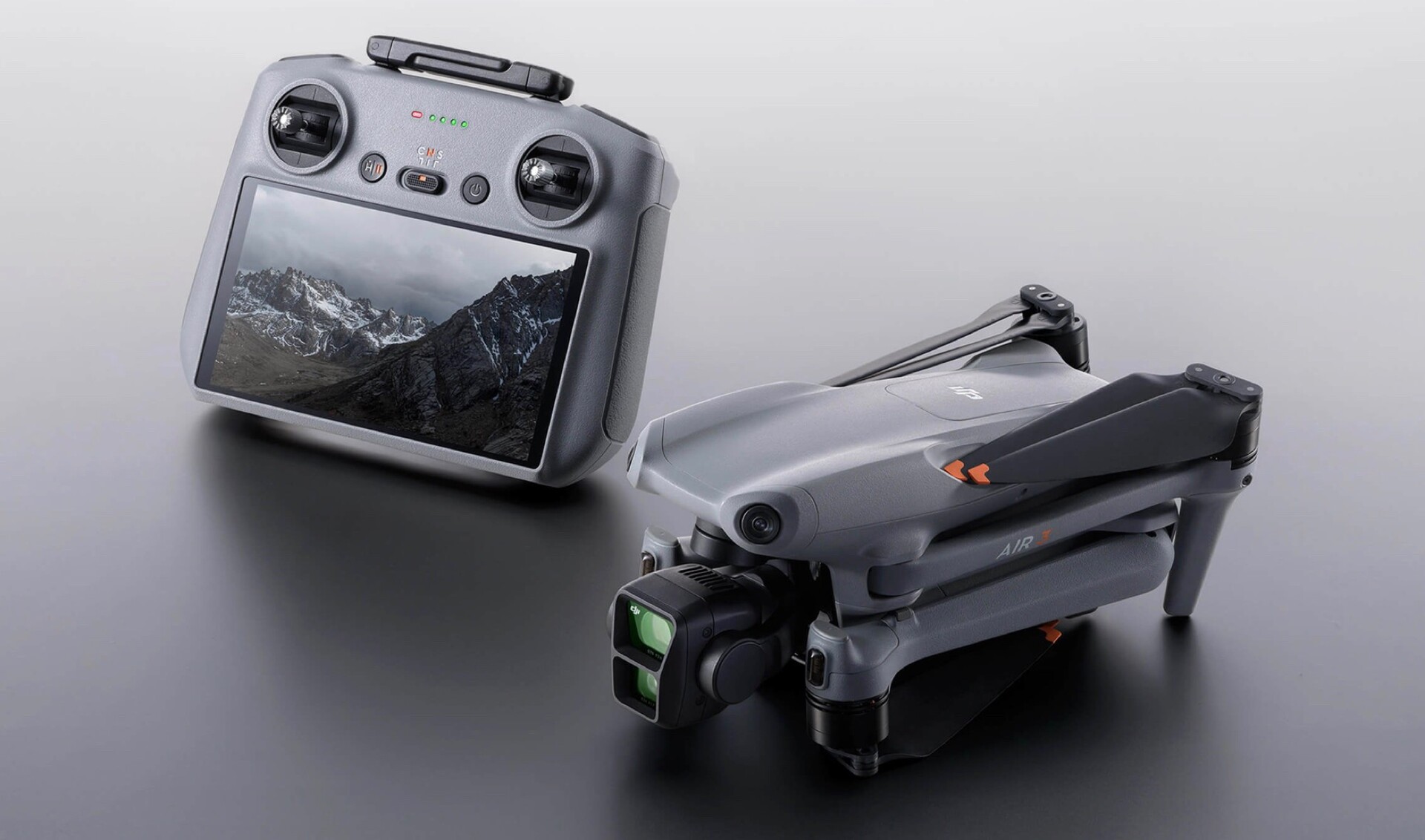 So besitzt die Air 3 dieselbe 48 MP f/2.8 Tele-Kamera mit 1/1,3 Zoll Sensor und dreifachem Zoom, die auch in der Mavic 3 Pro verbaut wird. Die 48 MP f/1.7 Hauptkamera setzt auf denselben Sensor wie die Tele-Kamera, kombiniert diesen aber mit einem Objektiv mit einer Kleinbild-äquivalenten Brennweite von 24 mm. Beide Kameras können Fotos mit einer Verschlusszeit von 2 Sekunden bis 1/16.000s, sowie 4K-Videos mit bis zu 100 Bildern pro Sekunde aufzeichnen.