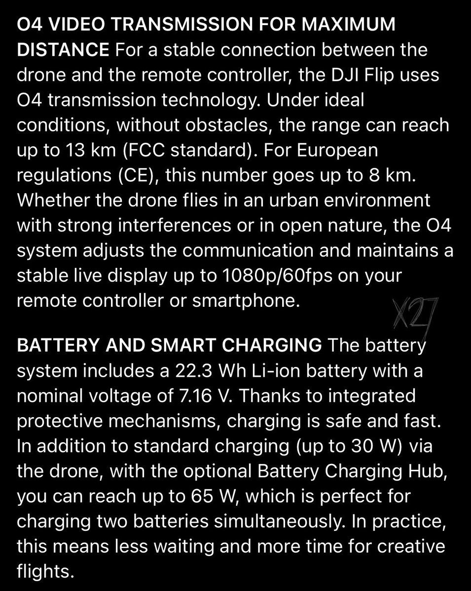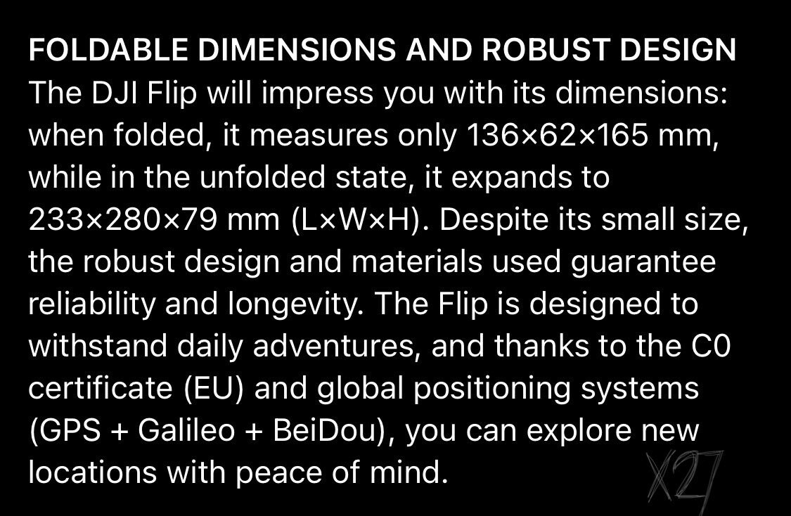 Bis zuletzt war ja unklar, ob nun tatsächlich ein 3-Achsen-Gimbal wie in der DJI Mini 4 Pro (hier bei Amazon erhältlich) in der DJI Flip integriert wurde, was der Leak im kroatischen Webshop nun aber bestätigt, der auch noch weitere Informationen ergänzt, etwa zur 24mm Brennweite mit F/1.7 Blende sowie D-Log-M-Support.
