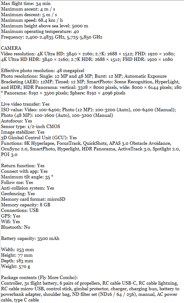 Roland hat nun auch das gesamte Datenblatt der DJI Mavic Air 2 im Fly-More-Bundle online gestellt, wir haben es unten noch eingebettet. Viele Gerüchte bestätigen sich darin, etwa die längere Flugzeit, die 48 Megapixel-Aufnahmen - das Gewicht steigt allerdings auf 570 Gramm (von 430 Gramm in der Mavic Air)