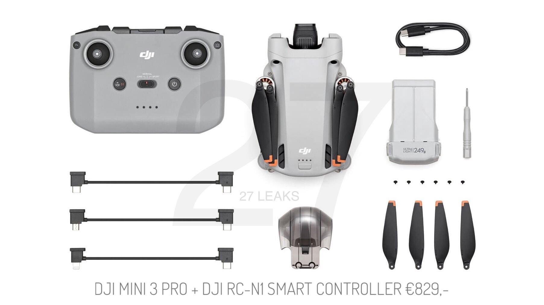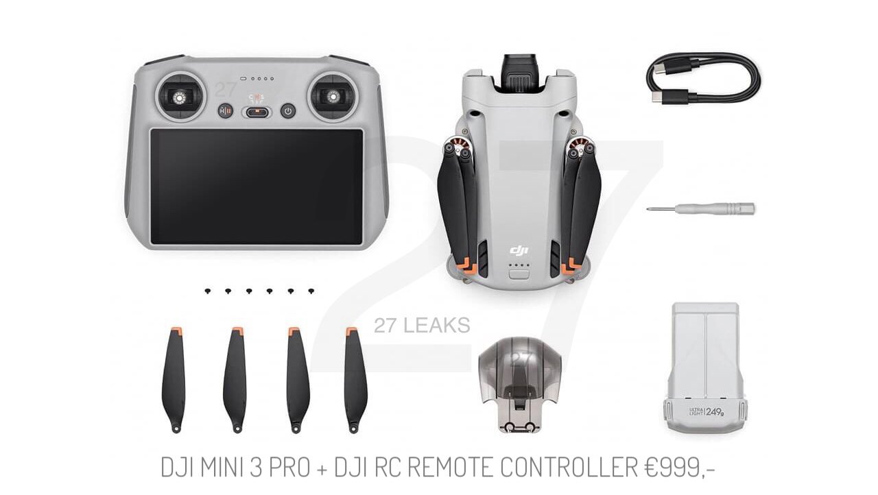 Zwei davon beinhalten eine Fernbedienung, einmal das Paket mit dem bekannten DJI RC-N1 Smart Controller um vermutlich 829 Euro, andererseits das teurere Premium-Paket mit dem neuen DJI RC Remote Controller, das wohl um 999 Euro in Europa an den Start geht. Unten sehen wir nun erstmals den Paketinhalt dieser beiden Varianten und deren Unterschiede. Da der neue Controller ein Display integriert hat, sind Verbindungskabel zum Smartphone unnötig und fehlen folglich, ansonsten sind jeweils Kameraschutz, Propeller, Ladekabel, Schraubenzieher sowie natürlich die Drohne und der Basisakku integriert, mit der die DJI Mini 3 Pro 249 Gramm wiegen wird.