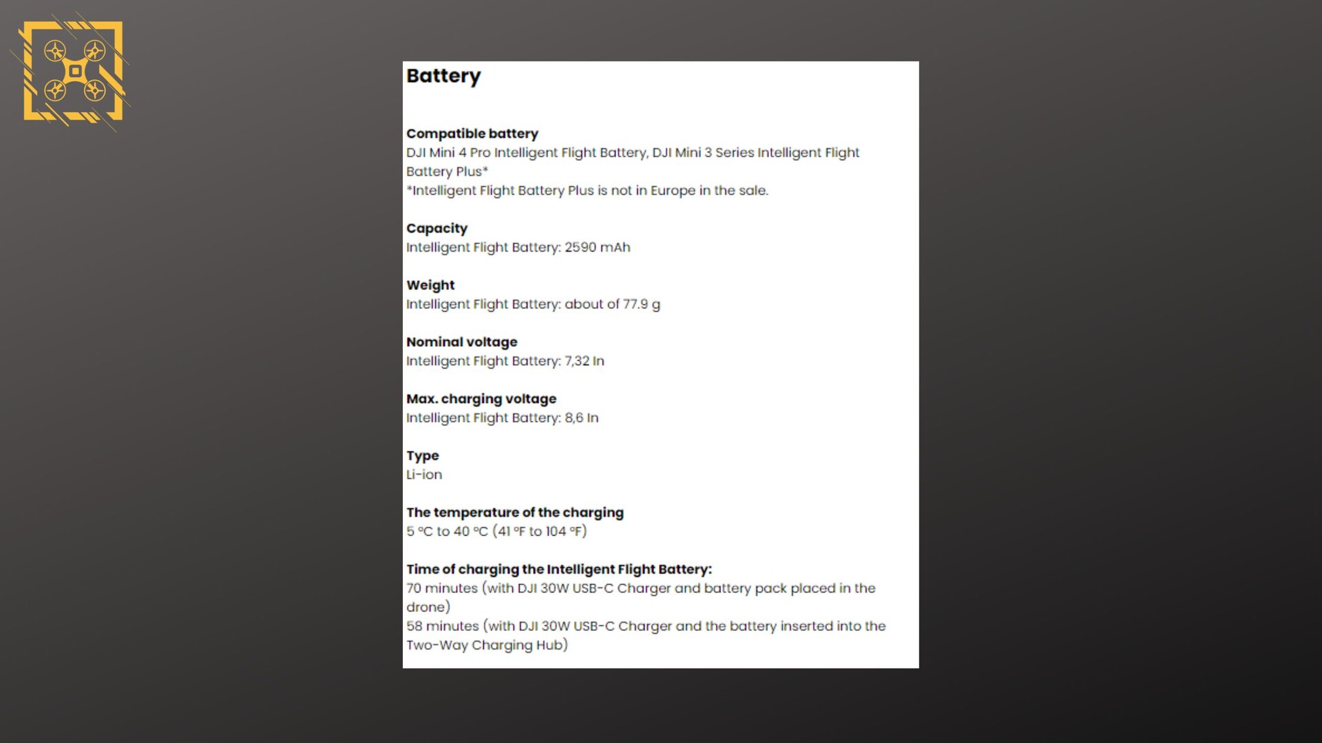 Viele neue Promobilder (siehe unten und oben) stammen von Igor Bogdanov, der in dem letzten Bild unten auch die DJI Mini 4 Pro mit dem optionalen Cellular Dongle zeigt. Zuletzt vermutet wurde zudem, dass es auch in Europa die größeren Intelligent Flight Akkus Plus geben wird, was sich nun doch nicht bewahrheitet hat, wie Roland Quandt einem geleakten Datenblatt entnimmt. Es bleibt in der EU also beim Standard-Akku, der die Drohne nicht schwerer als 249 Gramm macht aber maximal 34 Minuten Flugzeit bietet.