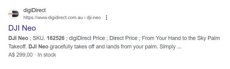 Der nicht namentlich von Jasper Ellens genannte Händler ruft laut Produktseite 299 Dollar für die Drohne auf, wobei unklar ist, um welches Paket es sich hierbei genau handelt. In Australien werden es wohl australische Dollar und nicht US-Dollar sein, mit denen hier zu rechnen ist. Das bestätigt sich auch, wenn man ein wenig auf Google sucht. Die zu früh veröffentlichte Produktseite wurde zwar mittlerweile wieder gelöscht, eine Vorschau blieb allerdings noch zurück, aus dem klar hervorgeht, dass es sich um Australische Dollar handelt (siehe unten).