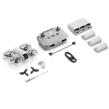 Neben der Drohne selbst zeigen die Bilder oben auch den konkreten Inhalt der verschiedenen Kombo-Pakete, etwa der Fly More Kombo. Die DJI Neo wird es mit und ohne Controller zu kaufen geben. Wer mag, kann die Drohne etwa über die Tasten an der Oberseite automatisch fliegen lassen, alternativ ist laut Jasper Ellens auf X (vormals Twitter) auch eine Steuerung per Smartphone-App und Bluetooth-Verbindung möglich. Unten seht ihr einzelne Aufnahmen des 1.435 mAh Akkus, der maximal 18 Minuten Flugzeit liefert, sowie des Ladegeräts für bis zu drei Akkus und der austauschbaren Gitter für die recht massiven und laut Jasper Ellens leisen Propeller.