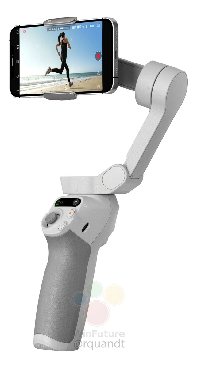 Mehr Akku aber weniger Features für weniger Geld lautet die Devise beim "Osmo Mobile Lite" das offenbar ebenfalls in Kürze starten wird. OM SE nennt sich das Einsteiger-Gimbal laut Leaker, das in den Bildern unten in hellgrau zu sehen ist. Der Akku ist hier 2.600 mAh groß, was wohl das höhere Gewicht von 352 Gramm erklärt, mit der magnetischen Handy-Halterung sind es 383 Gramm.