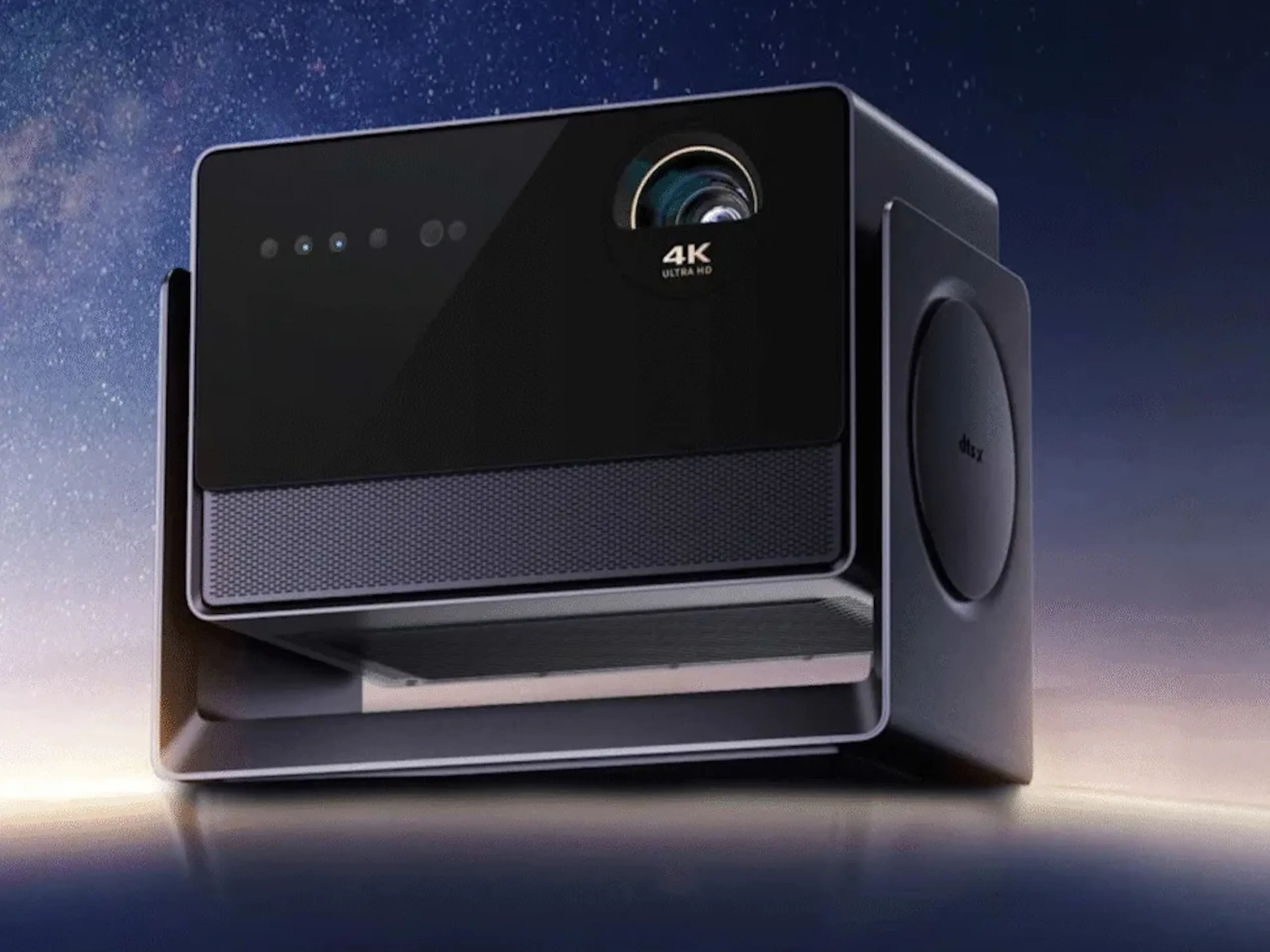 Angegeben wird ein wohlgemerkt dynamisches Kontrastverhältnis von bis zu 65.000:1, nativ werden 8.000:1 angegeben, unterstützt werden auch HDR 10 und HDR 10+, ebenso geworben wird mit Dolby Vision. Es kommt ein Betriebssystem zum Einsatz, mithilfe dessen sich nicht nur Inhalte von Streaming-Anbietern ohne einen externen Zuspieler wiedergeben lassen, stattdessen wird auch das Vorhandensein einer Art Gestensteuerung beworben, Sprachbefehle lassen sich wie üblich etwa an smarten TVs ebenfalls nutzen. Es kommt ein spezielles Kühlsystem zum Einsatz, welches wahrscheinlich nicht nur (lokale) Überhitzungen verhindern, sondern die Lautstärke auf 24 dB limitieren soll. Triple-Laser-Beamer gibt es auch hierzulande und etwa über Amazon zu kaufen.