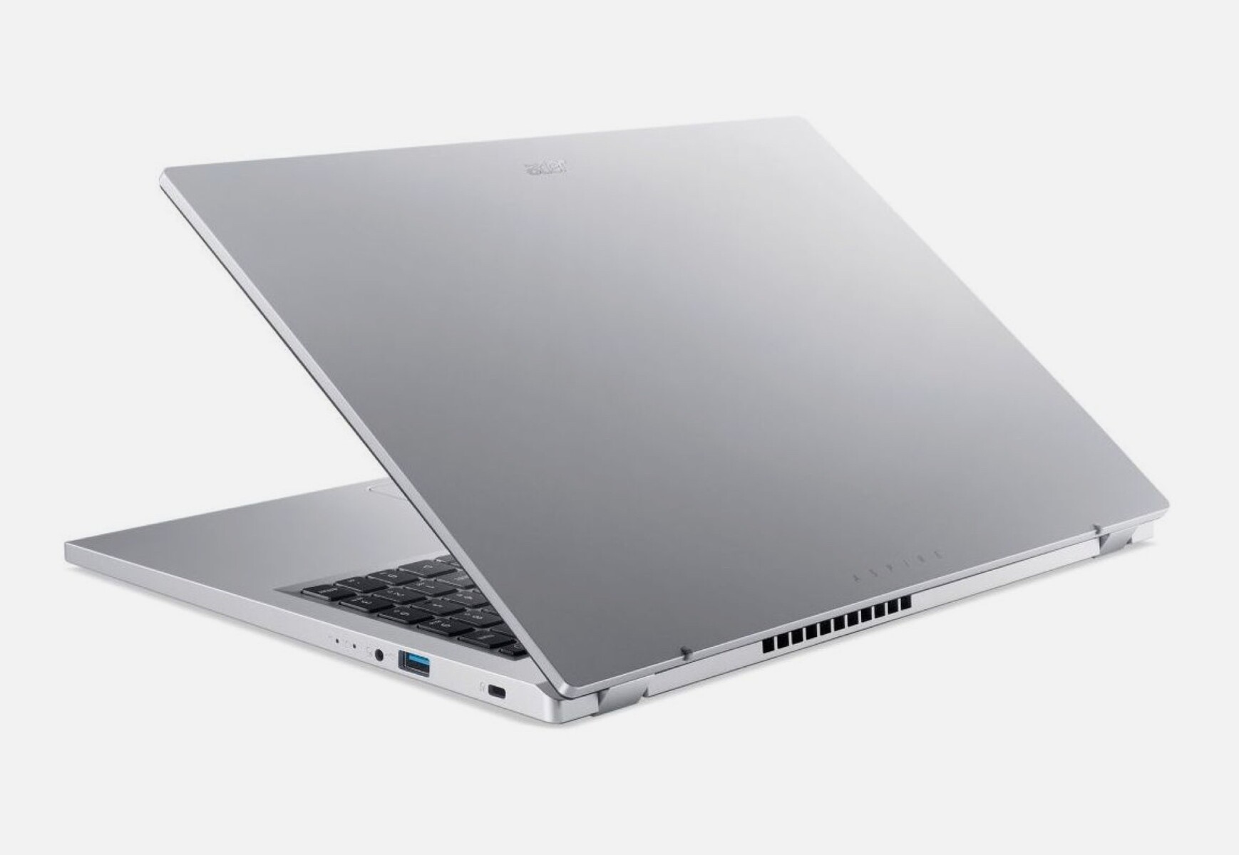 Acer verbaut im Basismodell 8 GB LPDDR5-Arbeitsspeicher, eine 128 GB SSD, die nach dem Kauf aufgerüstet werden kann, Stereo-Lautsprecher und ein IPS-Panel mit einer Diagonale von 15,6 Zoll und einer Auflösung von 1.920 x 1.080 Pixel. Das Notebook besitzt zwei USB-A-Ports (5 Gbit/s), einen USB-C-Anschluss mit Datenraten bis 20 Gbit/s, über den das Gerät mit maximal 45 Watt aufgeladen werden kann, einen HDMI-Stecker und einen 3,5 mm Kopfhöreranschluss. Das Gerät ist rund 1,9 Zentimeter dick und 1,81 Kilogramm schwer.