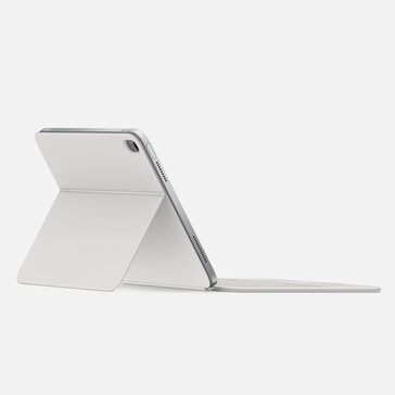 Das iPad der zehnten Generation kann magnetisch an der Tastaturhülle befestigt werden. Ein ausklappbarer Standfuß erlaubt es, das iPad aufzustellen, und den Winkel des Bildschirms einzustellen. Dieser Kickstand entfällt beim teureren Magic Keyboard, wodurch sich dieses etwas besser zum Platzieren auf einem Schoß eignet. Dafür kann die Tastatur auf Wunsch einfach abgenommen werden. Da die Verbindung zum iPad über Apples Smart Connector erfolgt, benötigt diese keinen eigenen Akku.
