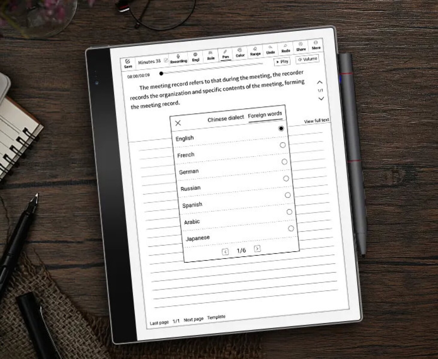 Für die Nutzung im Dunkeln bietet das Display eine Beleuchtung, die in 36 Stufen gedimmt werden kann. Abgesehen vom Bildschirm handelt es sich beim Bigme Galy um ein herkömmliches Android 11-Tablet, samt vorab installiertem Google Play Store, 2,3 GHz Achtkern-Prozessor, 6 GB Arbeitsspeicher und 128 GB Flash-Speicher, der durch eine microSD-Speicherkarte erweitert werden kann. Das Gerät unterstützt WLAN und Bluetooth. Bigme verbaut Stereo-Lautsprecher, einen Fingerabdrucksensor und vier Mikrofone. Das Tablet ist mit einem Stylus kompatibel, der Druck in 4.096 Stufen erkennt.