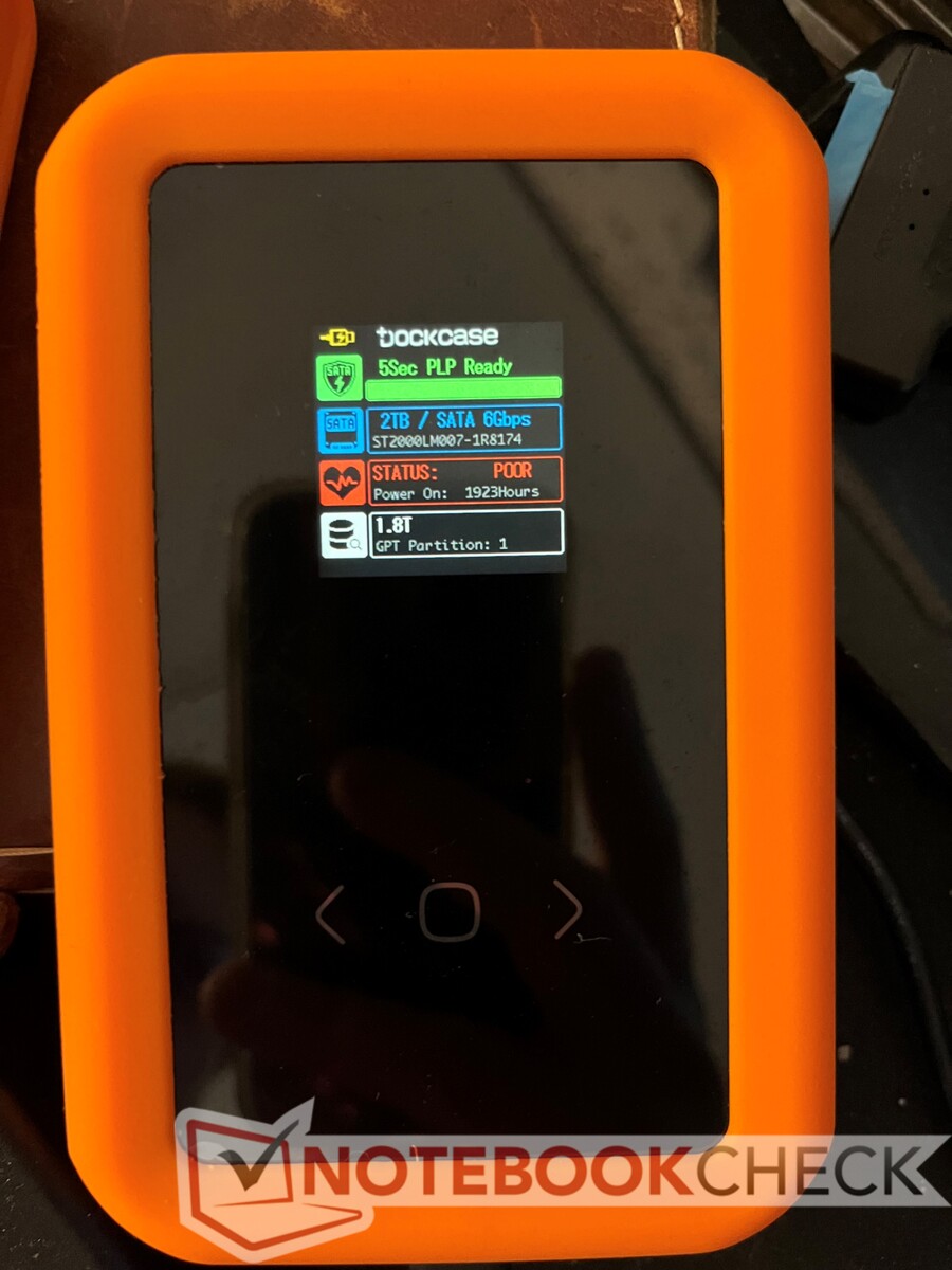 Die Dockcase-Geräte sind nur ein optisches Highlight. Sie bieten den gleichen Funktionsumfang wie das M.2-Gehäuse, was eine wirklich gut ist. Das vollfarbige LCD-Display auf der Oberseite des Gehäuses zeigt viele Informationen an, von Laufwerksdetails bis hin zur Spannungsnutzung. Diese Bildschirme sind dank der kapazitiven Tasten unter dem Display leicht zu bedienen. Die Bildschirme können mit einem Doppelklick auf die Taste auf der Rückseite des Gehäuses jeweils um 90 Grad gedreht werden.