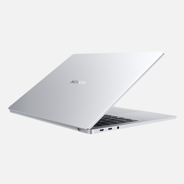Das Notebook setzt auf ein Metallgehäuse, das 1,58 Kilogramm leicht und 15,9 Millimeter dünn ist. Die 720p-Webcam kann trotz der schmalen Bildschirmränder über dem Display platziert werden. Honor verbaut Stereo-Lautsprecher, zwei Mikrofone, ein Multitouch-Trackpad und einen Fingerabdrucksensor, der im Power Button sitzt.