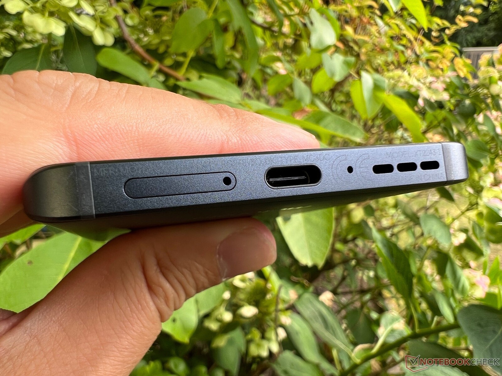 Das 6,55 Zoll große, 144 Hz schnelle 1.080p+-pOLED-Display ist zur linken und rechten Seite hin gekrümmt, was dem Smartphone einen futuristischen Look verleiht. Gorilla Glass 5 schützt die Front vor Kratzern, der Fingerabdrucksensor wird direkt ins Display integriert. Die 32 MP f/2.45 Selfie-Kamera sitzt in einer Punch-Hole, während das rechteckige Kameramodul auf der Rückseite eine 50 MP f/1.8 Hauptkamera mit OIS, eine 13 MP f/2.2 Ultraweitwinkel-Kamera mit Makro-Funktion und einen 2 MP Tiefen-Sensor beherbergt.