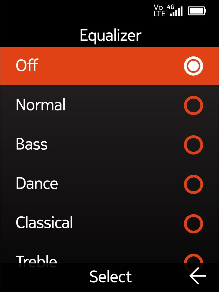 Mit 128 MB integriertem Speicher und einem microSD-Kartenleser, der nur Karten bis 32 GB Speicher akzeptiert, hält sich die Menge an Musik, die auf dem Gerät gespeichert werden kann, aber stark in Grenzen. Trotz integriertem LTE-Modem ist Musik-Streaming keine Option, denn HMD Global bietet keine entsprechenden Apps an. Immerhin steht ein Equalizer zur Verfügung, um den Klang an die eigenen Vorlieben anzupassen.