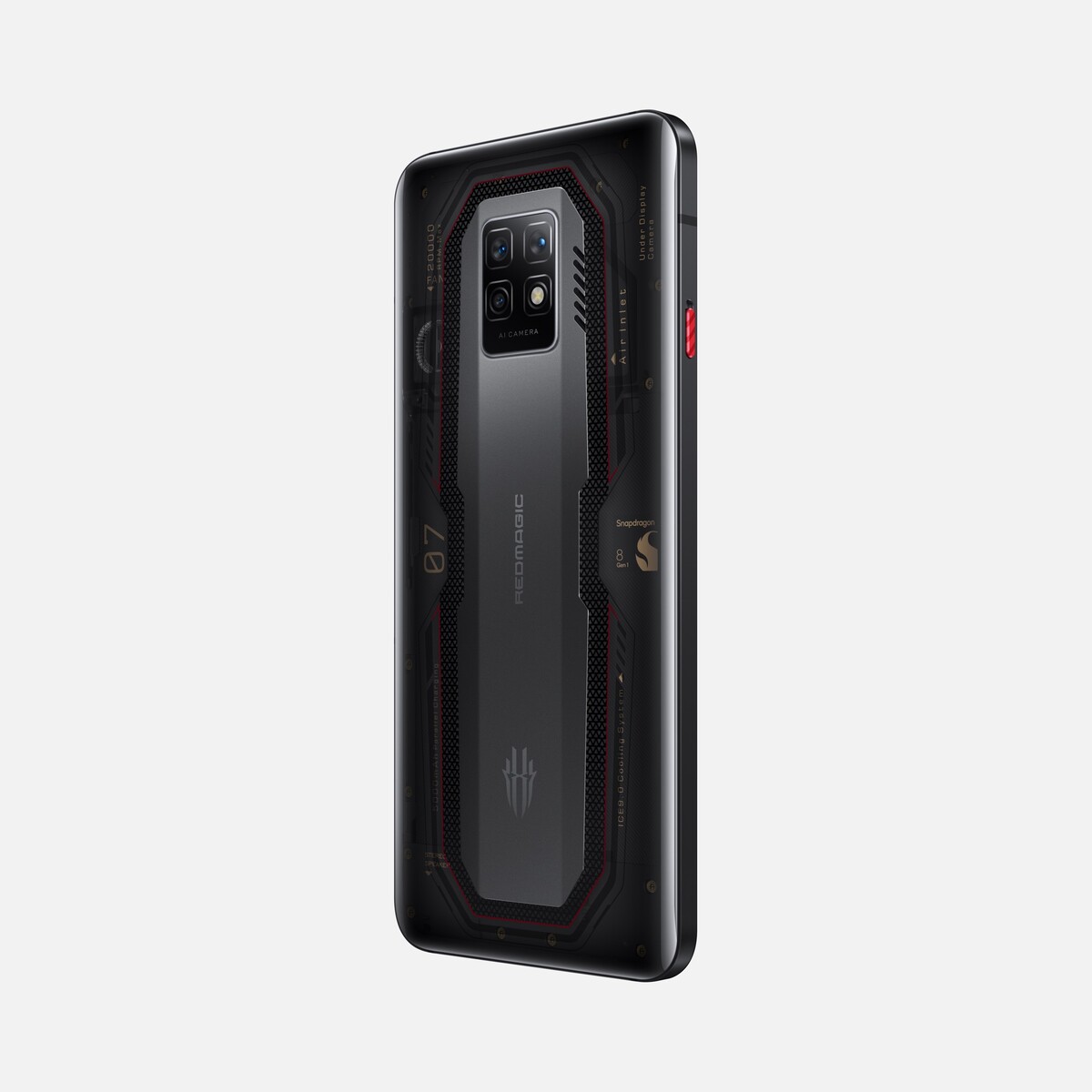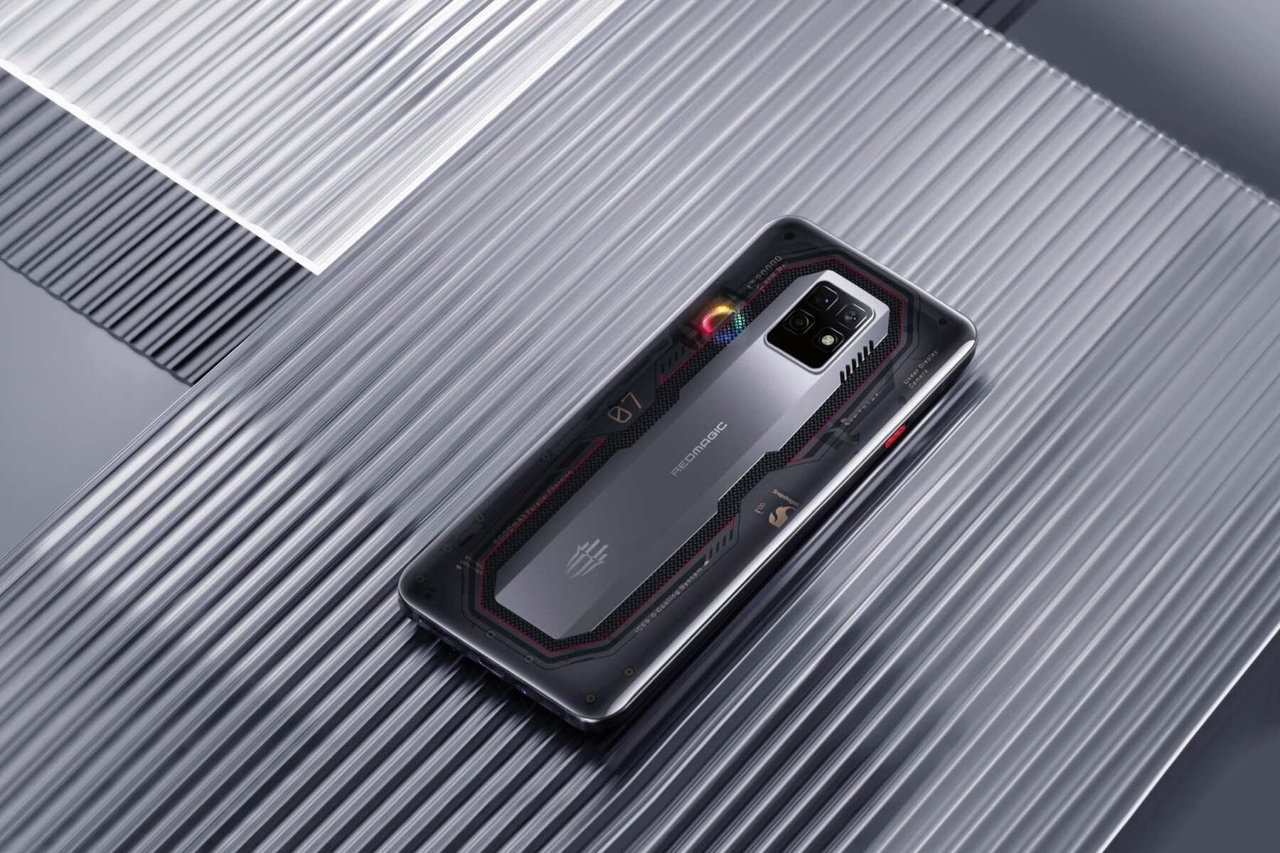 Dazu kommt ein ausgeklügelter Kühlkörper. Schon das Basismodell ist mit 16 GB Arbeitsspeicher ausgestattet. Dem mächtigen Flaggschiff-SoC wird der Red Core 1 zur Seite gestellt, ein von Nubia entwickelter Chip, der den SoC entlasten soll, indem Berechnungen für Audio, Vibrationen und RGB-Beleuchtung übernommen werden. Den Lüfter mit RGB-Beleuchtung gibts nur bei der teureren Variante, die mit einer teilweise transparenten Rückseite ausgestattet ist.