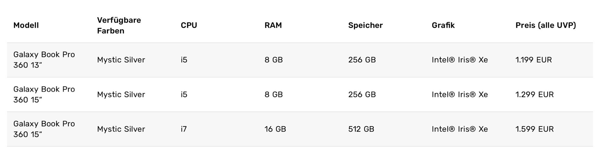 Das kleinere Gerät ist optional mit einem 5G-Modem erhältlich, wobei dieses Modell in Deutschland offenbar nicht angeboten wird. Das Galaxy Book Pro 360 kostet mindestens 1.199 Euro, weitere Details zum Convertible gibt es in diesem Artikel.