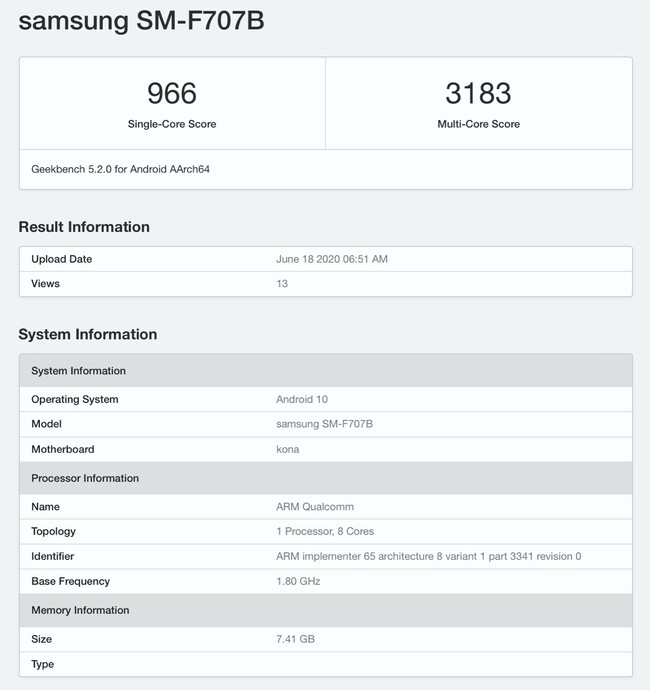 Ein erster Geekbench-Eintrag zeigt nun, mit welcher Leistung man bei der zweiten Generation des Falt-Phones rechnen darf. Darauf ist ein Smartphone mit der Modellnummer SM-F707B zu sehen, bei dem es sich allen bisherigen Gerüchten zufolge um das Galaxy Z Flip 2 handelt. Das Gerät erreicht bei Geekbench 5 eine Multi-Core-Wertung von beachtlichen 3.183 Punkten – fast 20 Prozent mehr als das aktuelle Modell, das nur 2.685 Punkte erzielen konnte.