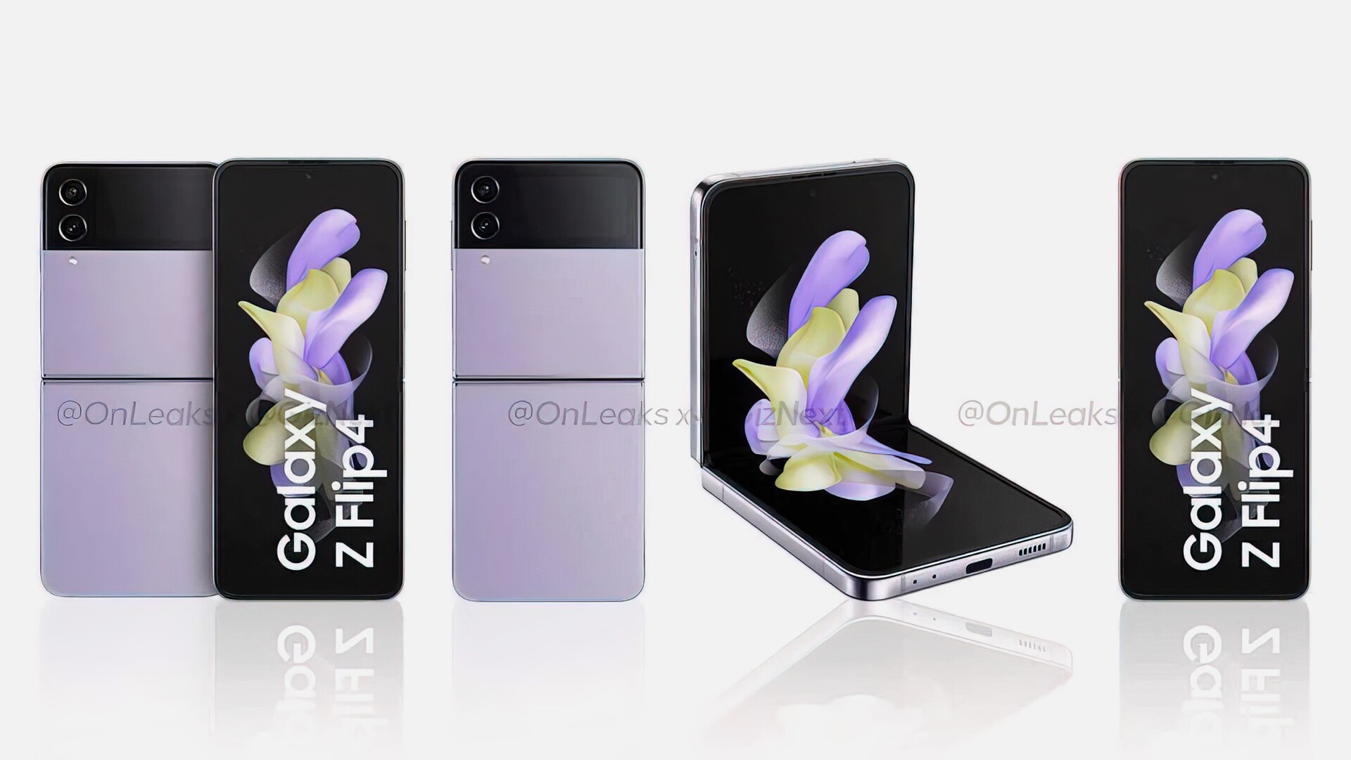 Der meist ausgesprochen zuverlässige Leaker @OnLeaks hat zusammen mit GizNext die unten eingebetteten Bilder veröffentlicht, bei denen es sich angeblich um die offiziellen Pressebilder des Samsung Galaxy Z Flip4 5G handelt. Dabei ist das faltbare Smartphone in den Farben Schwarz, Blau, Orange und Violett zu sehen. Die Farben werden von Samsung angeblich Graphite, Blue, Pink Gold und Bora Purple genannt.