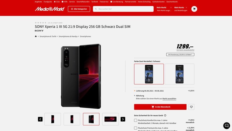 Mehr als zwei Monate nach der offiziellen Präsentation des Geräts kann das Smartphone endlich vorbestellt werden – MediaMarkt bietet das Xperia 1 III mit 12 GB Arbeitsspeicher und 256 GB Flash-Speicher für 1.299 Euro an. Von einem Vorbesteller-Bonus fehlt derzeit jede Spur, immerhin bietet der Händler ein Bundle mit Sony WF-XB700 (ca. 75 Euro auf Amazon) Ohrhörern für 1.236,59 Euro an – wer die TWS dazu nimmt spart also rund 64 Euro, mit einer Power Bank ist das Gerät sogar für "nur" 1.194,59 Euro zu haben.