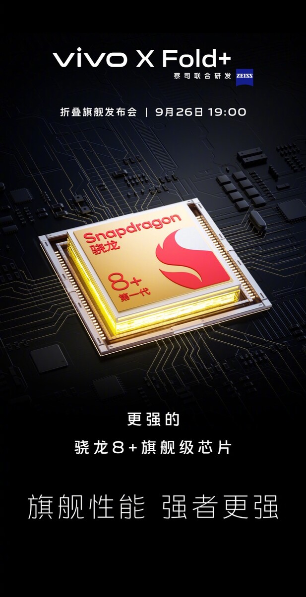 Weitere Teaser-Bilder bestätigen ganz offiziell, dass das Vivo X Fold+ mit einem Qualcomm Snapdragon 8+ Gen 1 ausgestattet ist – kaum überraschend, nachdem das Smartphone bei AnTuTu bereits eine deutlich bessere Performance als das Samsung Galaxy Z Fold4 5G (ca. 1.450 Euro auf Amazon) erzielen konnte. Das Vivo X Fold+ kann über USB-C mit maximal 80 Watt aufgeladen werden – ein Upgrade von den 66 Watt des Vorgängermodells.