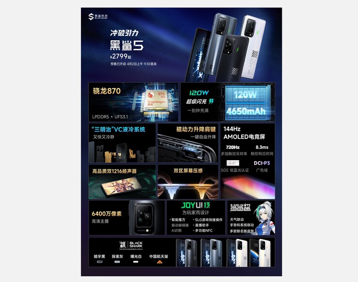 Auch der 4.650 mAh Akku samt 120 Watt Ladegerät wird vom Topmodell übernommen, eine volle Ladung dauert so nur 15 Minuten. Das Xiaomi Black Shark 5 kommt in China ab dem 2. April zu Preisen ab 2.699 Yuan (ca. 380 Euro) auf den Markt, Details zum internationalen Launch stehen noch aus.
