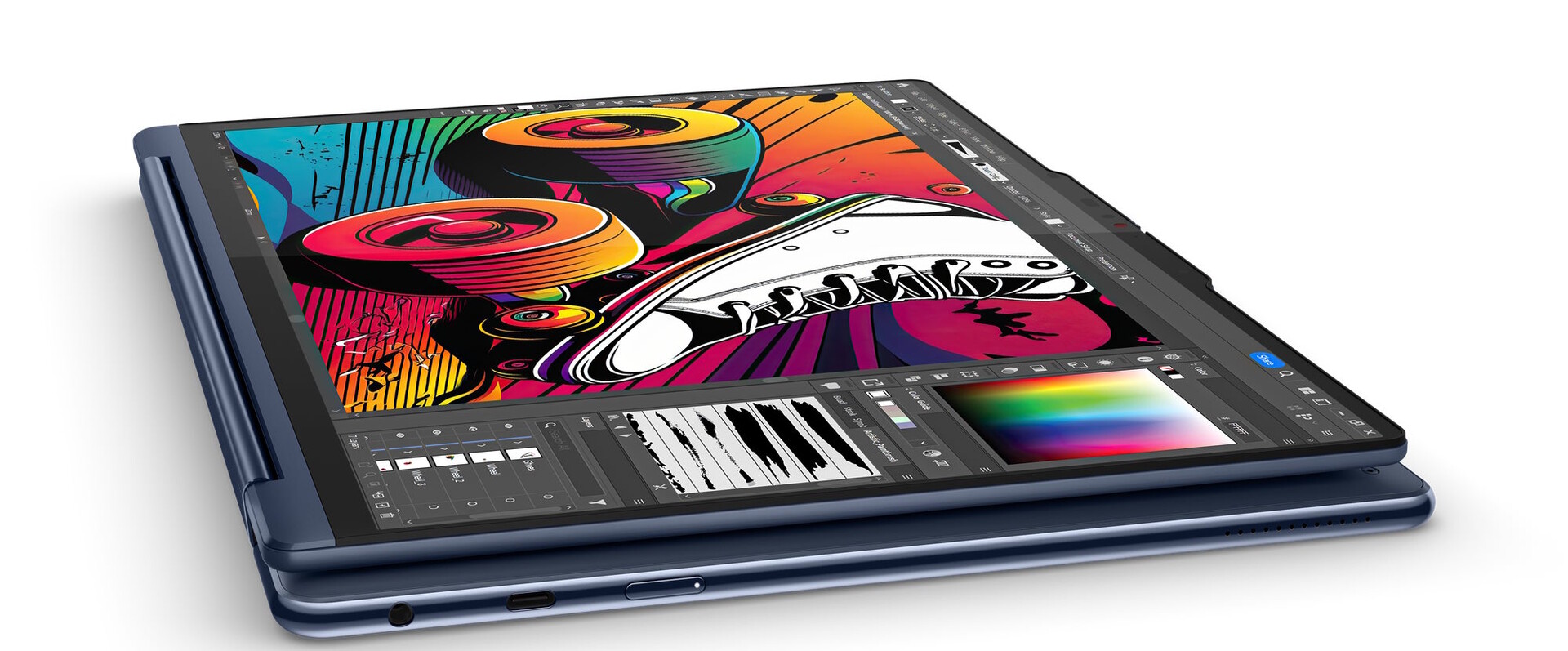 Lenovo bietet auch sogenannte 2-in-1-Geräte an - konkret handelt es sich beim zur CES 2024 vorgestellten Yoga 9i 2-in-1 um ein Laptop, dessen hochauflösendes Display auch hinter die Tastatur geschwenkt werden kann, wodurch sich das Modell quasi als Ersatz für ein Tablet einsetzen lässt - bei einem freilich höheren Gewicht von mindestens 1,35 Kilogramm, zudem kann die Tastatur je nach Anwendungsfall auch stören.