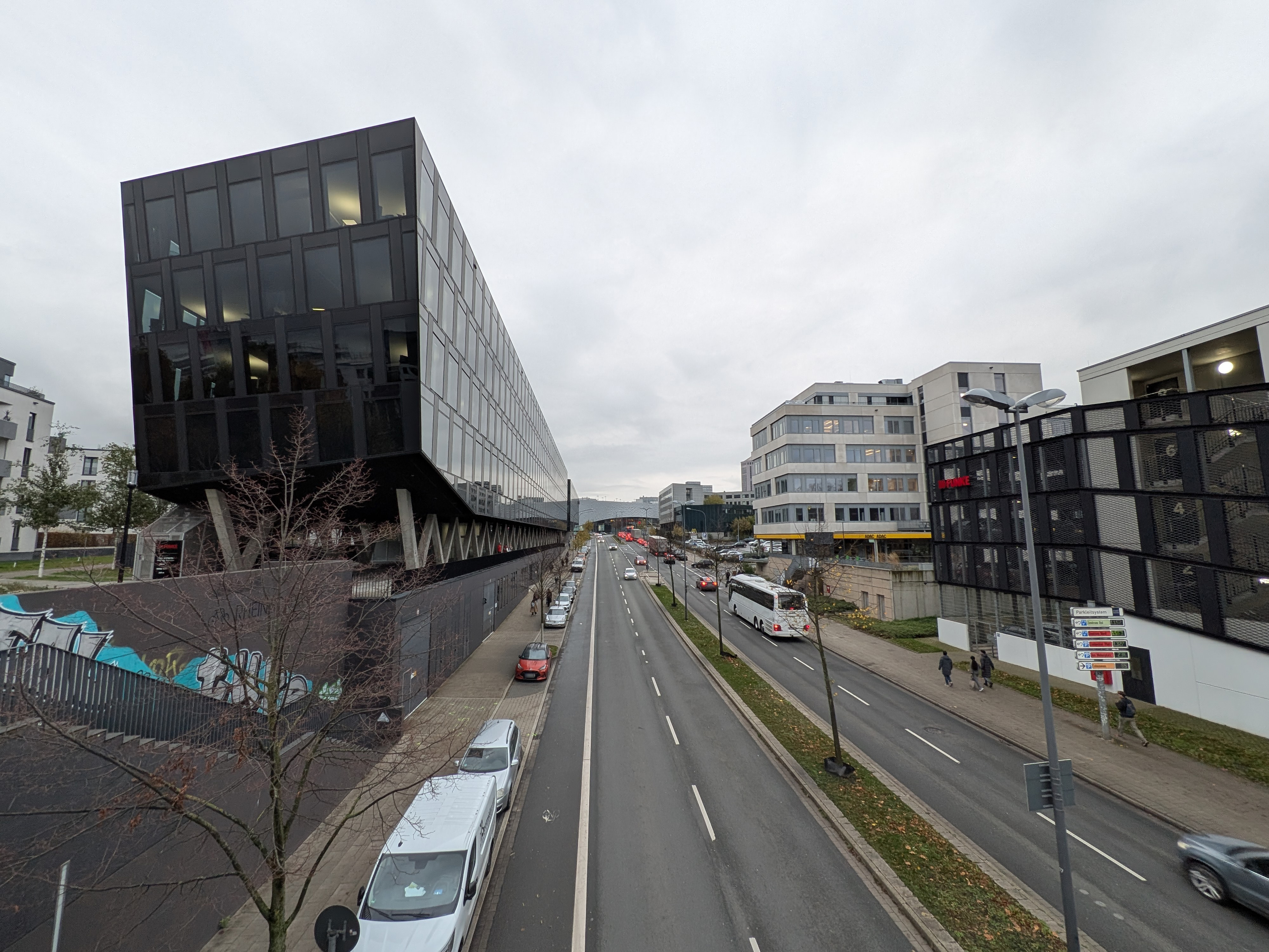 Das rückseitige Kamerasystem des Pixel 9 Pro Fold liefert für ein faltbares Handy gute Fotos, allerdings kommen die kleinen Sensoren schnell an ihre Grenzen bei Dunkelheit. Selbst die 48-MPix-Hauptkamera, welche bei Tageslicht mit einer starken Dynamik und soliden Schärfe überzeugt, muss bei Nacht mit dem heutzutage fast schon winzigen 1/2.0-Zoll-Sensor Defizite in Kauf nehmen.