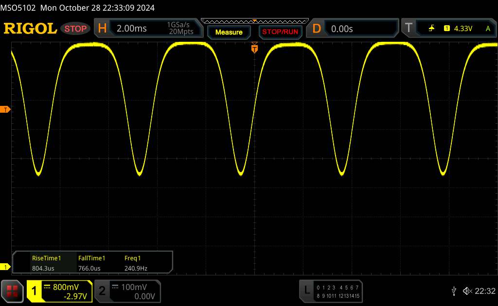 Leider werden die Augen bei der Betrachtung des OLED-Panels mit einem niedrigfrequenten PWM- Flackern konfrontiert, welches mit 240 Hz arbeitet. Auch die Amplitude des PWM ist für einen 120-Hz-AMOLED-Bildschirm mit 24 Prozent relativ augenunfreudlich.