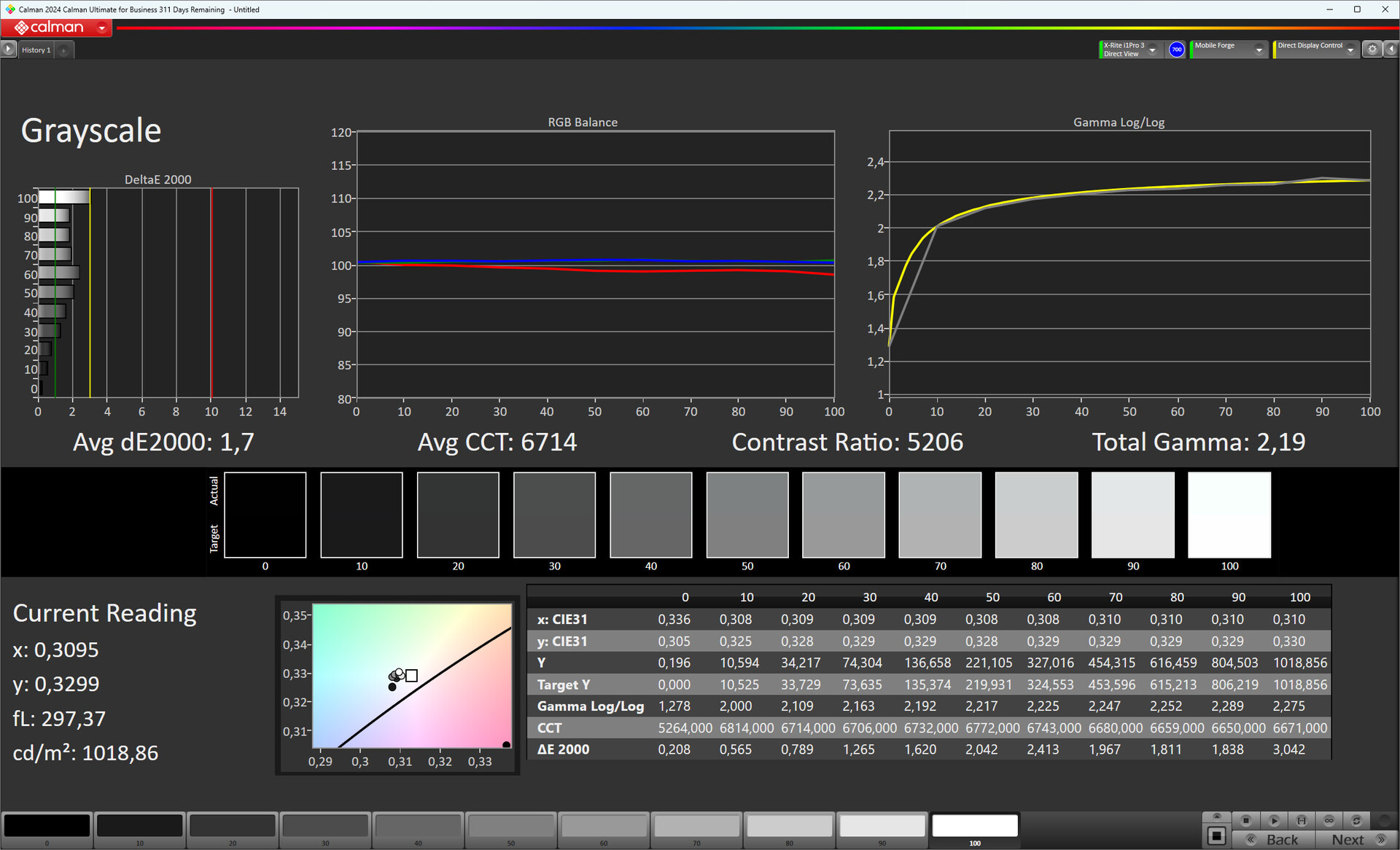 ΔE Greyscale Calman: 1.7 | ∀{0.09-98 Ø5}