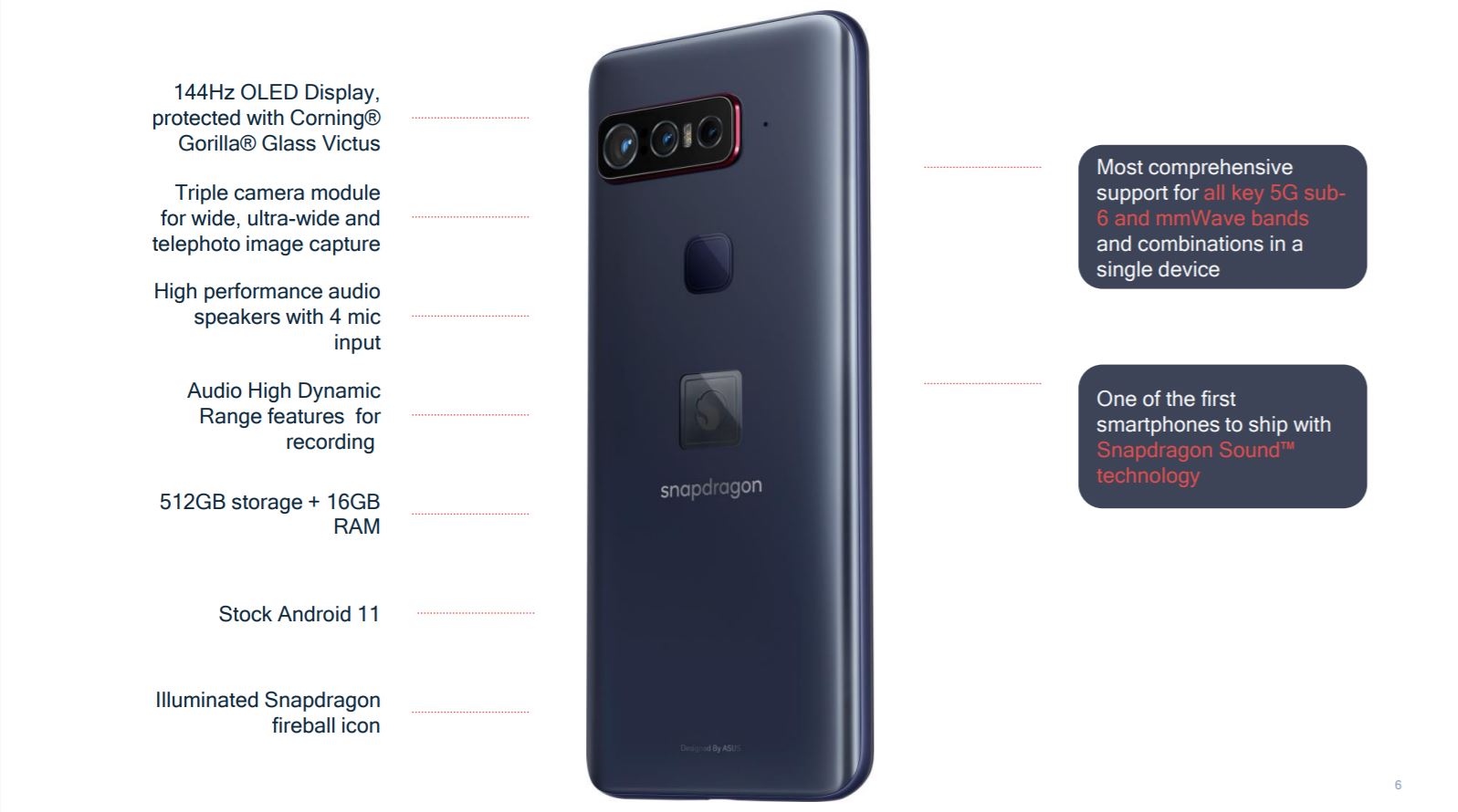 Das Qualcomm-Phone mit dem sperrigen Namen basiert auf einem Snapdragon 888 und noch nicht auf dem vor Kurzem angekündigten Snapdragon 888+, was wohl einige Snapdragon Insider verwundern wird. Begründet wird das mit dem frühen Start der Entwicklung, dennoch wohl eine verpasste Chance Qualcomms, als Erster mit einem Snapdragon 888+-Flaggschiff am Markt zu sein. Wer sich das ROG Phone 5 im Vergleich heranzieht wird viele Ähnlichkeiten entdecken, einiges ist aber doch anders, etwa der von 6.000 auf 4.000 mAh geschrumpfte Akku, der dank Quick Charge 5 aber schneller und zwar mit 65 Watt lädt. Dass nicht die maximal möglichen 100 Watt unterstützt werden, liegt wohl daran, dass der Akku hierfür noch weiter schrumpfen müsste.
