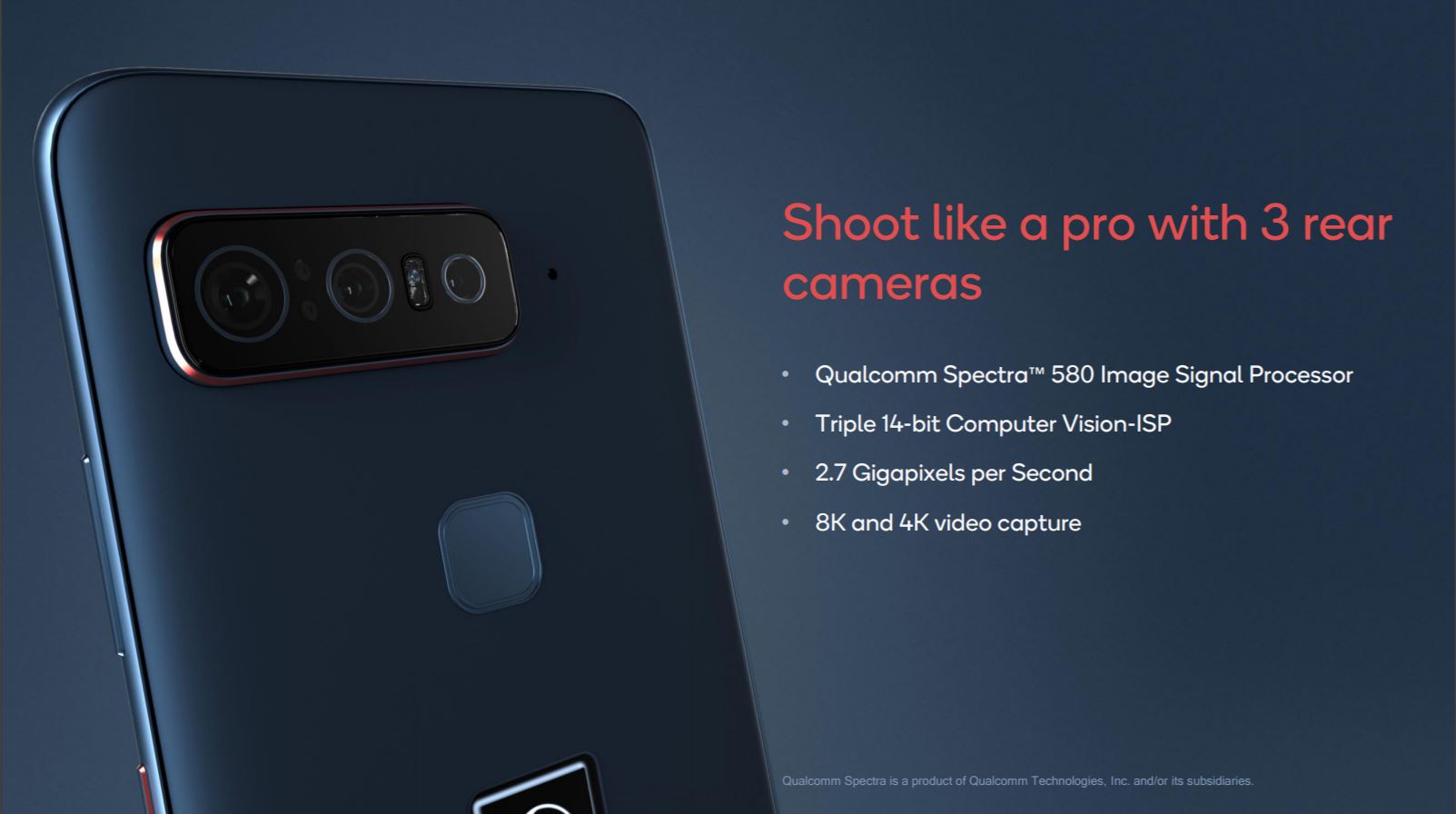 Nicht wirklich im Mittelpunkt stehen die Kameras des Snapdragon Insider-Flaggschiffs, aber auch hier gibt es solide Triple-Cam-Technologie, die von Qualcomms Spectra 580 ISP bestmöglich unterstützt wird und etwa auch 8K-Support sowie einen KI-unterstützten Zoom-Modus bietet. Ein 64 Megapixel IMX686 Sensor mit OIS wird hier um eine 12 Megapixel Ultraweitwinkel-Cam (IMX363) und eine 8 Megapixel Telefoto-Kamera mit 3x optischem Zoom und OIS ergänzt, letztere fehlt etwa beim Asus ROG Phone 5. An der Front des 6,78 Zoll großen Samsung FHD-AMOLED-Displays mit maximal 144 Hz Refreshrate findet sich eine 24 Megapixel Selfie-Cam. Als Abkömmling eines Asus Gaming-Flaggschiffs und mit Qualcomms Snapdragon Elite Gaming-Features, dürften auch mobile Gamer mit der "Snapdragon Insider Edition" glücklich werden - sofern sie sich von Bend-Testern fernhalten.