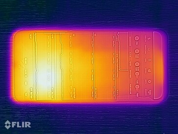 (±) Auf der Unterseite messen wir eine maximalen Wert von 43 °C (im Vergleich zum Durchschnitt von 34 °C).