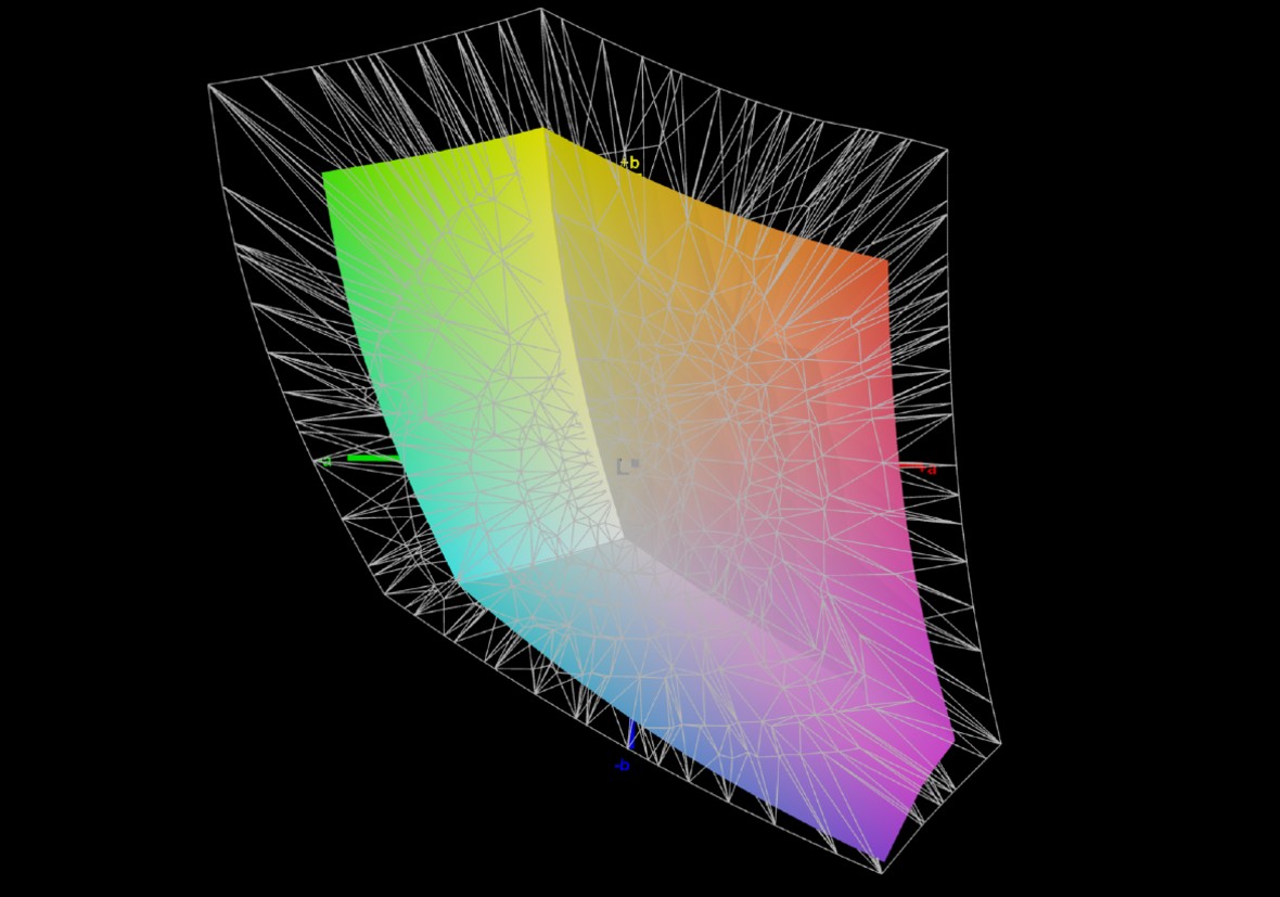 Die Messwerte des Displays fallen in mancher Hinsicht deutlich besser aus, als beim Vorgängermodell. So liegt die durchschnittliche Helligkeit mit 411 cd/m² gut 44 cd/m² höher und auch die Ausleuchtung ist knapp 10 % besser. Der wirklich sehr gute Kontrastwert vom Vorgänger konnte diesmal jedoch nicht erreicht werden und so bleibt das Display mit 1548:1 im Rahmen der beworbenen Werte. Bei der Farbraumabdeckung ist hingegen keine Verbesserung gegenüber dem Vorgänger zu erkennen. Stattdessen sind die Werte für AdobeRGB, sRGB und DCI-P3 um jeweils zwei Prozent schlechter.