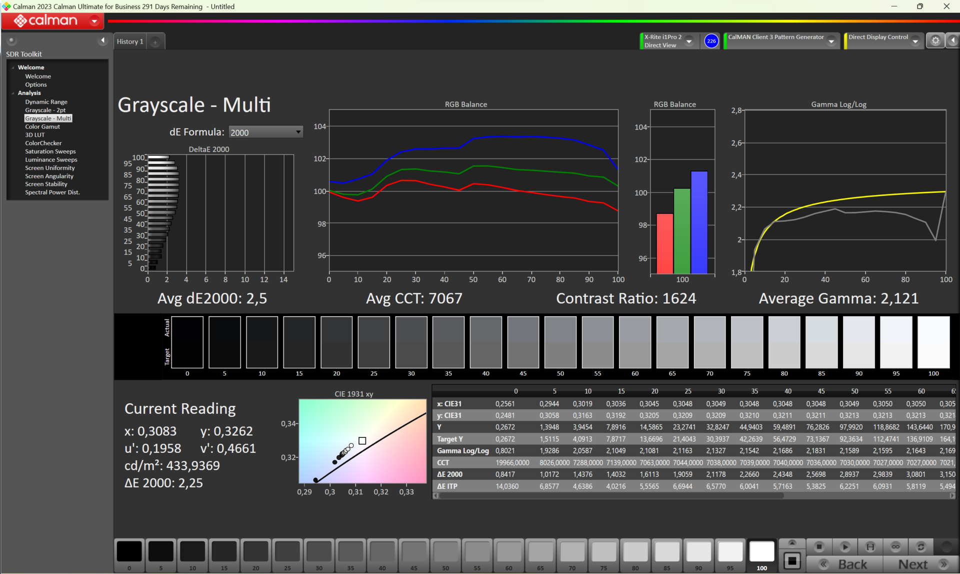 ΔE Greyscale Calman: 2.5 | ∀{0.09-98 Ø5}