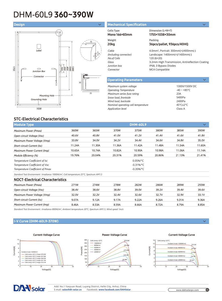 Die monokristallinen Halbzellen-Solarmodule DHM-60L9 von DAH-Solar sind derzeit mit einem hohen Preisnachlass von 41 Prozent erhältlich. Die Module sind mit 1.755 × 1.038 × 30 Millimetern etwas schmaler als herkömmliche Module. Gemessen an der geringfügig kleineren Fläche kann man mit 380 Watt Peak durchaus von einer starken Leistung sprechen. Auch der maximale Wirkungsgrad von 20,86 Prozent bei 120 Zellen lässt auf effiziente Module schließen.