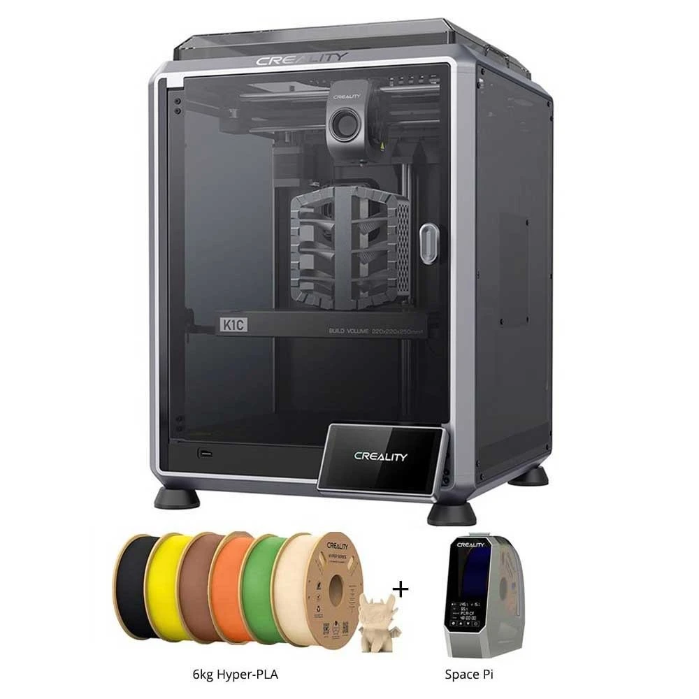 - Creality K1C 3D Drucker + Space Pi Trockner + 6 kg Creality Hyper-PLA (je 1 kg Schwarz, Hautfarbe, Gelb, Grün, Orange und Braun)