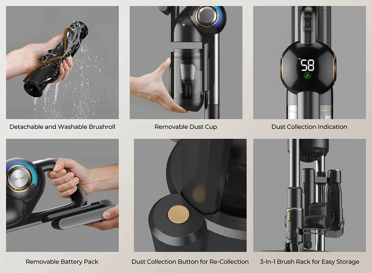 Zwei grüne LEDs beleuchten den Boden und machen so hervorragend sichtbar, wo noch Dreck vorhanden ist. Während ein 4-stsufiges Filtersystem 99,9 Prozent der Allergene herausfiltert, sorgt der abnehmbare und damit wechselbare Akku für bis zu 55 Minuten Laufzeit.