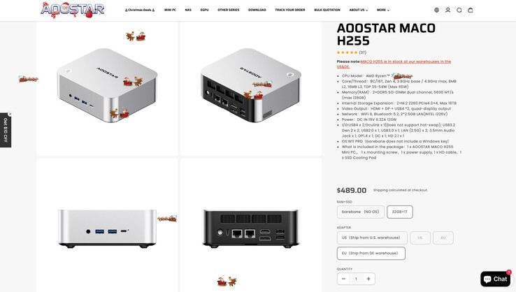 Der Aoostar Maco H255 Mini-PC kann aktuell direkt im Onlineshop des Herstellers für 309 US-Dollar (ca. 264 Euro) bestellt werden, und das mit Versand aus Deutschland, sodass keine Einfuhrumsatzsteuer und kein Zoll anfallen. Die Lieferung nach Deutschland und Österreich ist kostenlos.