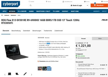 Nachdem erst vor zwei Monaten das neue Asus ROG Flow X13 (2023) mit aktuellen RTX-40-GPUs zur CES2023 angekündigt wurde, gibts das 2022er-Modell jetzt mit einer Nvidia GeForce RTX 3050 Ti, einem schnellen AMD Ryzen 9 6900HS, 16 GB verlötetem LPDDR5-6400-RAM und einer großen 1-TB-NVMe-SSD zum Bestpreis für 1.221 Euro bei Cyberport. Der nächstbeste Preis liegt für diese Konfiguration bei rund 1.800 Euro.