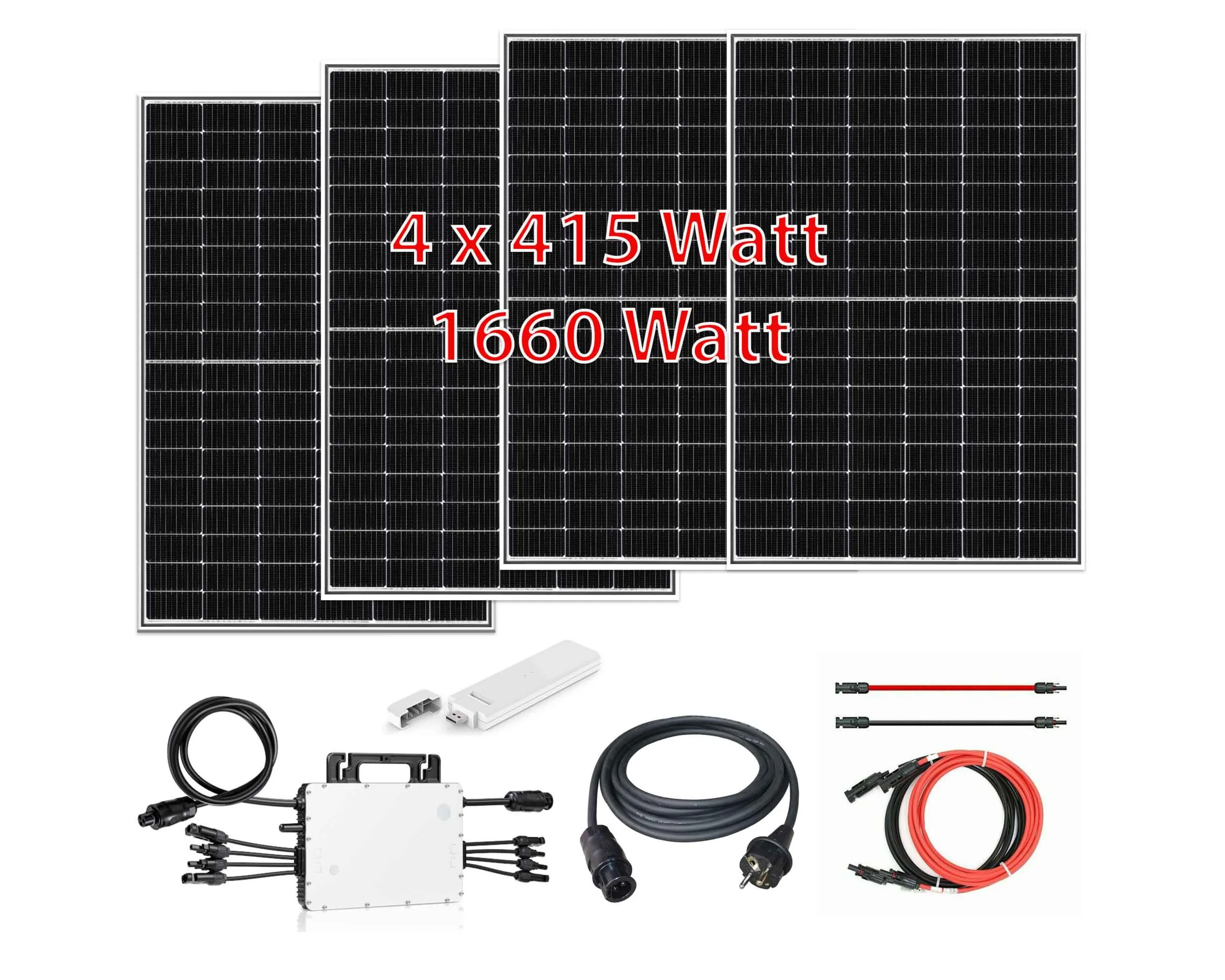 Dank der beiden MPPT-Laderegler werden auch bei Teilverschattung oder Staub auf den Modulen maximale Solarerträge erzielt. Zusätzlich ist ein Gateway Hoymiles DTU-WLite vorhanden, mit dem die Daten der Solarmodule ausgelesen werden können. Die vier Halbzellen-Solarmodule TW415MAP-108-H-S von TW Solar haben eine Leistung von jeweils 415 Wp, sind in korrosionsbeständige Aluminiumrahmen eingefasst und bestehen aus 108 monokristallinen Photovoltaik-Zellen.