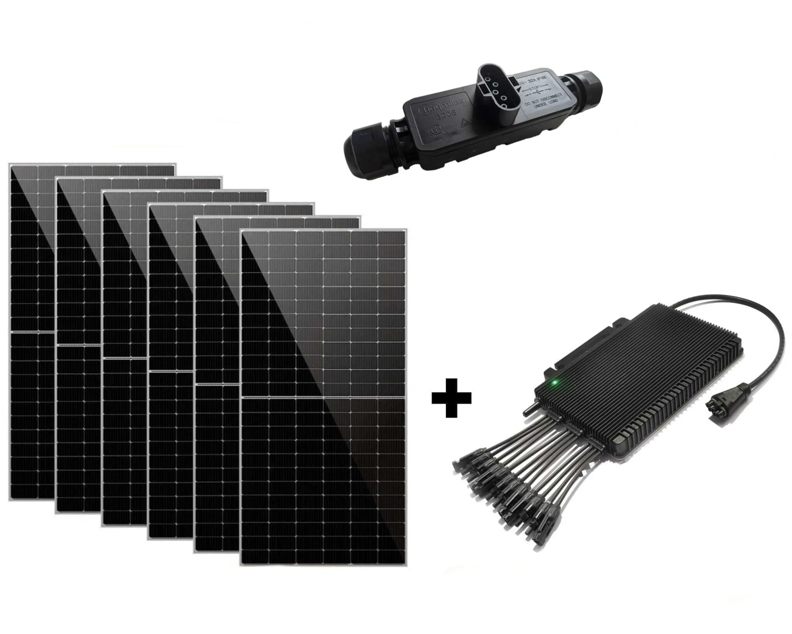 Das angebotene Balkonkraftwerk ist ein interessantes Nischenangebot. Mit sechs Solarmodulen TP6L60M von Talesun mit schicken silbernen Rahmen und einem Wechselrichter HMT-1800-6T von Hoymiles sowie BC-06 AC-Trunk (T-Knoten) wird hier ein leistungsstarkes PV-Set für einen höheren Stromertrag bereitgestellt.
