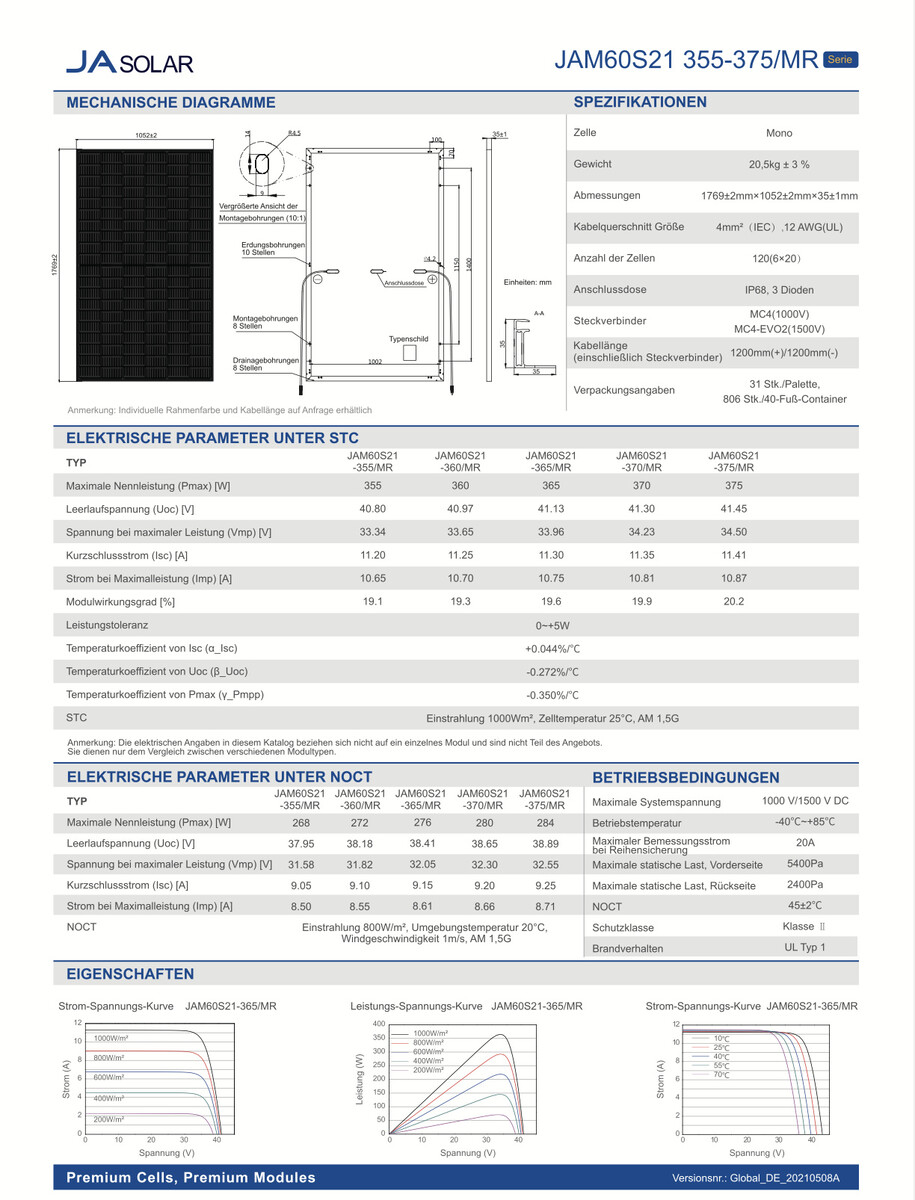 - Zwei JA-Solar-Module à 370 Wp, Full-Black