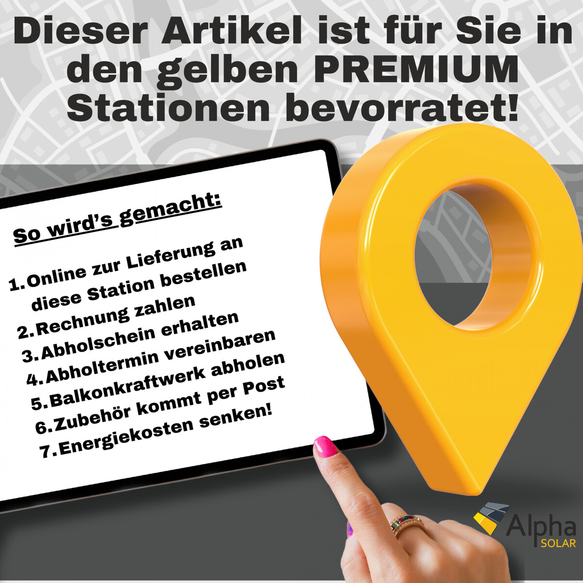 Während der Happy Hour am Freitag zwischen 14 bis 17 Uhr ist das Balkonkraftwerk beim Händler Alpha Solar für 239 Euro statt für die sonst veranschlagten 269 Euro erhältlich und kann kostenlos an etwa 80 Stationen abgeholt werden. Eine Lieferung ist gegen eine zuzügliche Versandgebühr von 59 Euro ebenfalls möglich.