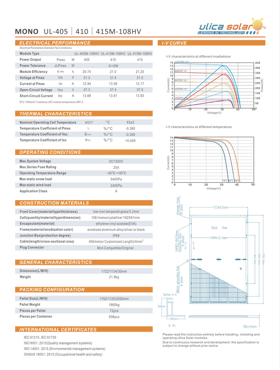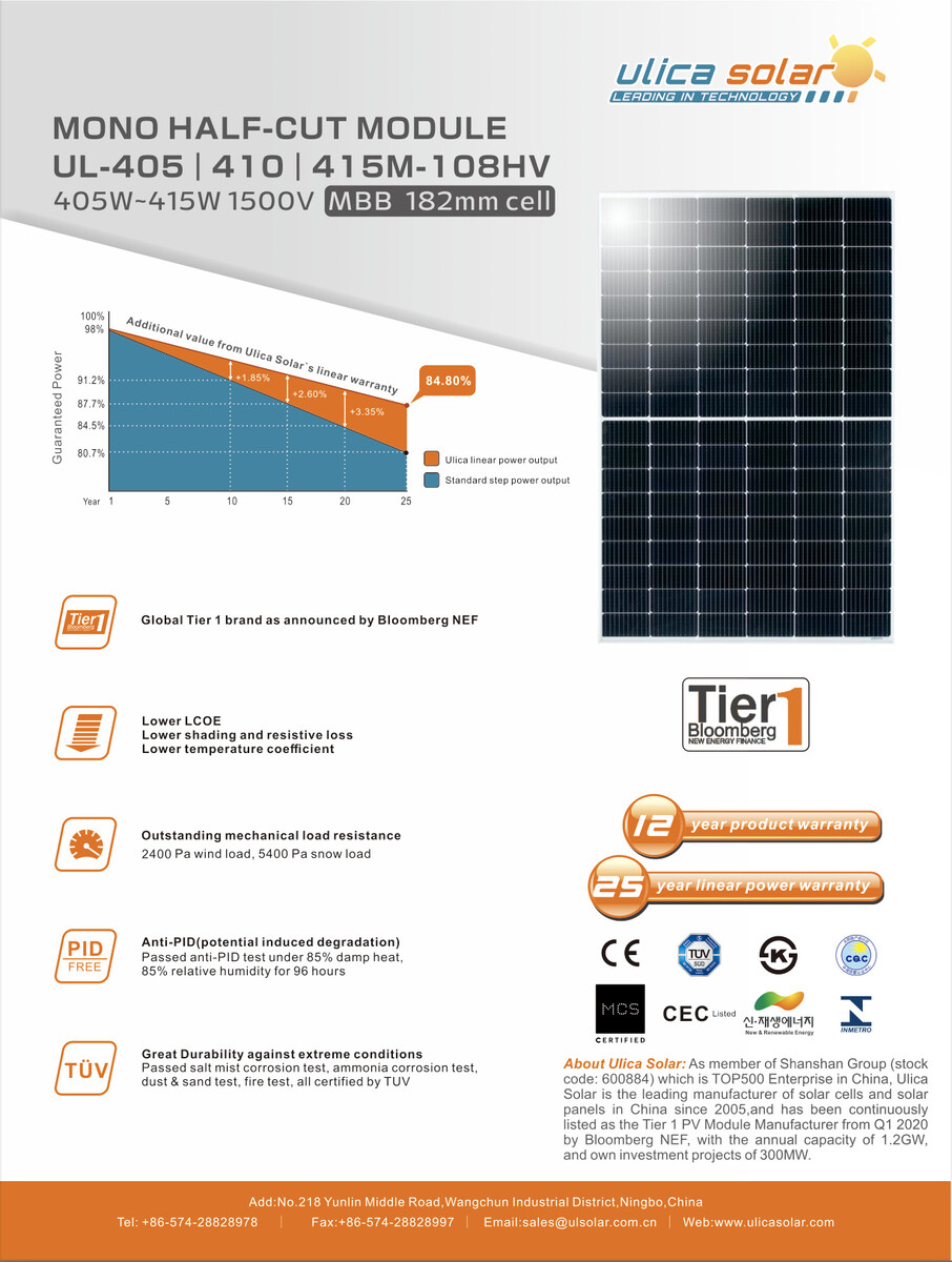 Das Balkonkraftwerk zur Erzeugung von klimafreundlichem Solarstrom ist mit zwei monokristallinen Solarmodulen von Hantech/Ulica mit jeweils 415 Wp ausgestattet. Dank der modernen Halbzellentechnologie werden zu große Leistungsverluste durch Verschattung reduziert. Der niedrige Temperaturkoeffizient sorgt außerdem dafür, dass der Energieertrag auch bei hohen Temperaturen auf höchstem Niveau bleibt.