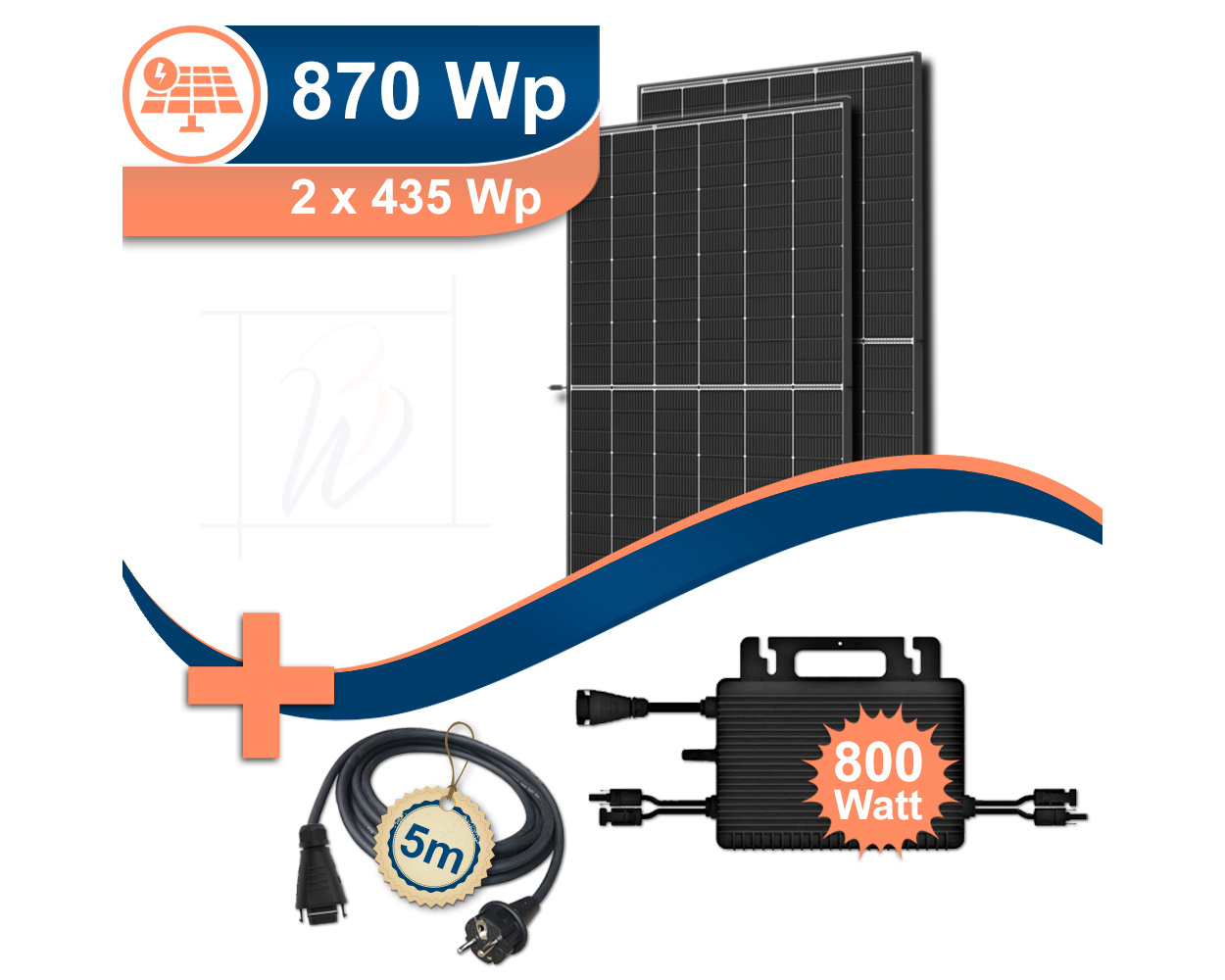 Das angebotene BKW zur Erzeugung von Solarstrom ist mit dem neuen Hoymiles-Wechselrichter HMS-800W-2T mit 800 Watt und integriertem Wifi, zwei Solarmodulen der nächsten Generation Trina Solar Vertex S+ mit je 435 Watt Peak und schwarzem Rahmen sowie einem Anschlusskabel ausgestattet.