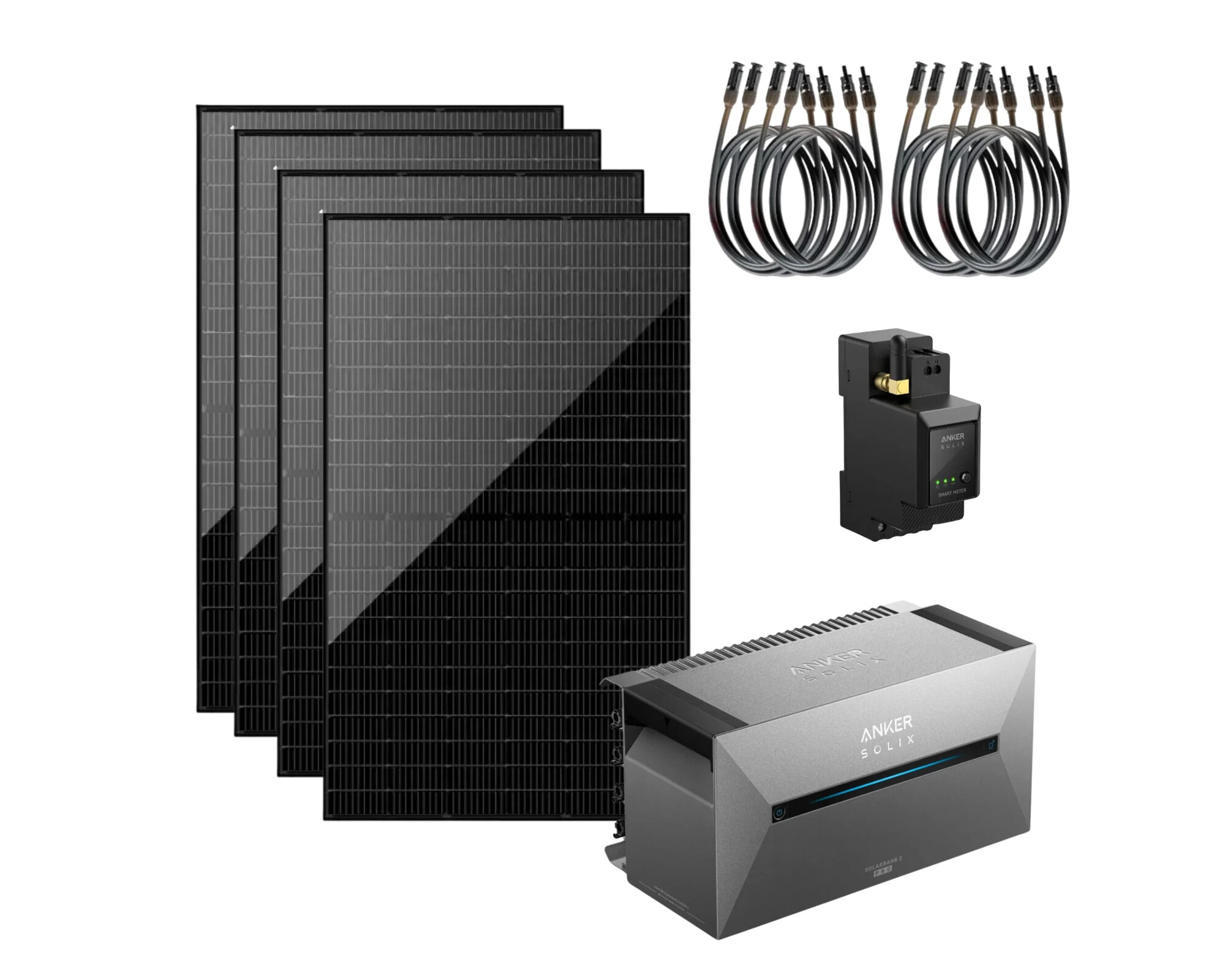 Derzeit ist das Set mit einem großzügigen Rabatt von 19 % erhältlich. Im Lieferumfang enthalten ist ein Wechselrichter Anker Solix 2 E1600 Pro mit einer Leistung von 800 W. Der Inverter verfügt über einen Solarspeicher mit einer Kapazität von 1.600 Wh. Außerdem enthält das Komplettset vier Solarmodule mit je 405 Wp in Full Black von Slenergy mit den Maßen 172 cm x 113,5 cm x 3 cm und einem Gewicht von je 22 kg.